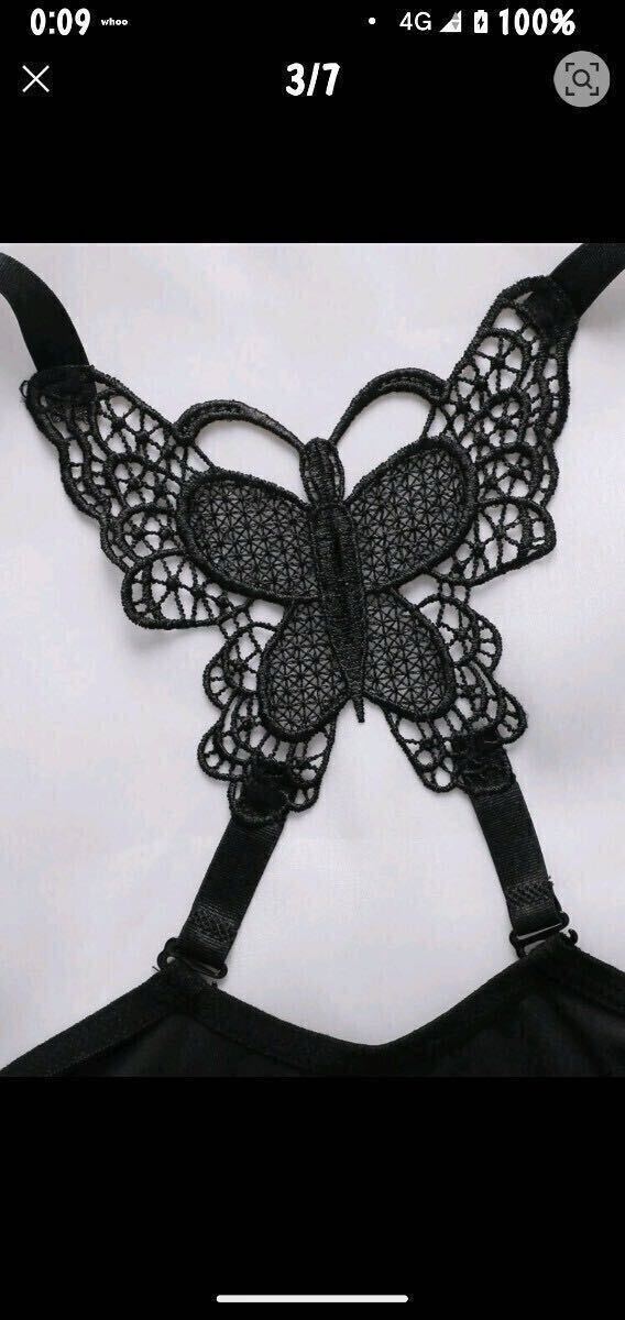 Product name: 新品!XLブラジャー ショーツ 上下セット ブラック 黒背中レース バタフライ レース セット フロントホック 肉厚パッド