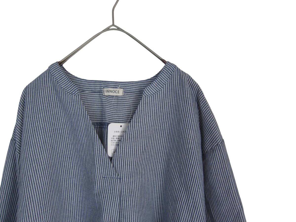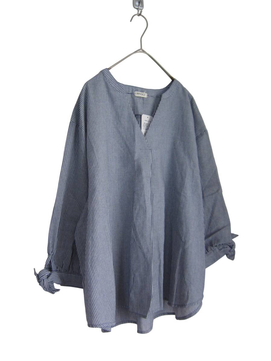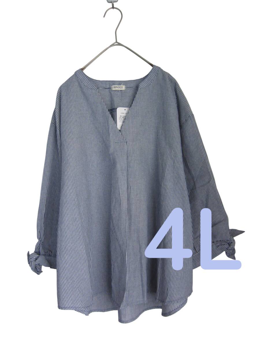Product name: ★送料無料 W93 新品 【4L】 ネイビー ストライプ 7分袖 シャツチュニック 袖リボン 大きいサイズ ゆうパケットポスト