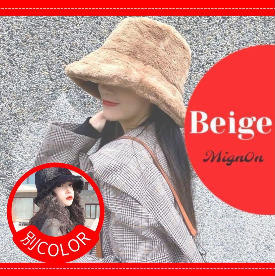 バケハ【ベージュ】ファーバケットハット ボア かわいい 帽子 ハット ファー 暖かい 防寒 386
