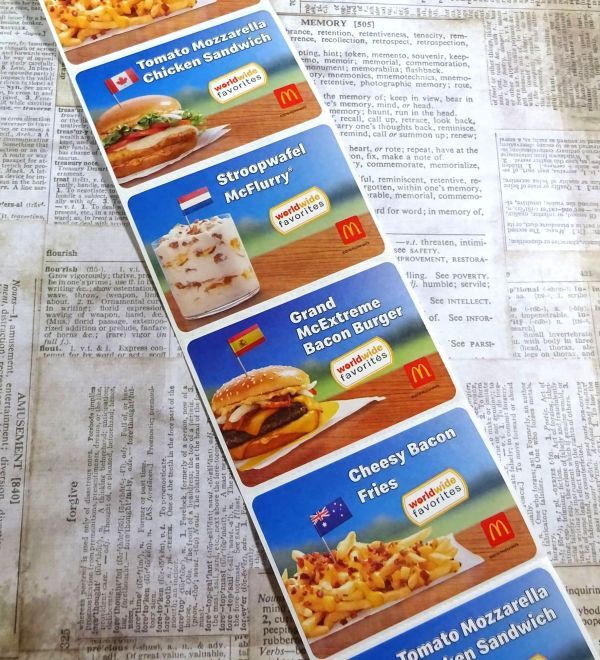 海外紙もの マクドナルド 2019年 Mac  4種バーガー柄(各5枚)  シール  ステッカー  20枚