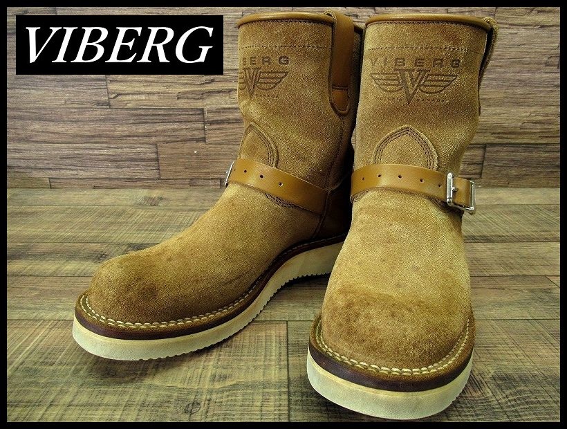 送無 VIBERG ヴァイバーグ スエード レザー コンビ スチールトゥ ショート エンジニア ブーツ 純正 クレープソール ベージュ UK8.5D 約27.0