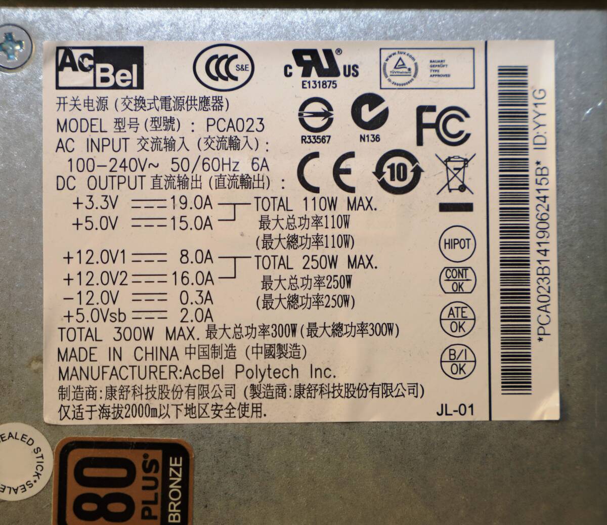 Product name: PC用電源300W ACBEL PCA023