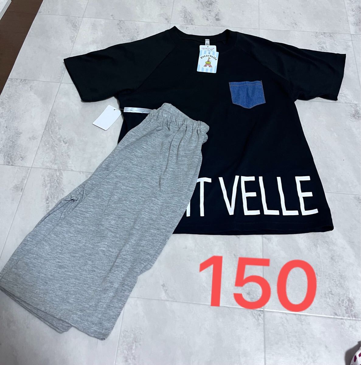 新品 半袖パジャマ 男の子 ブラック 黒 ロゴ 150 上下 セットアップ セット