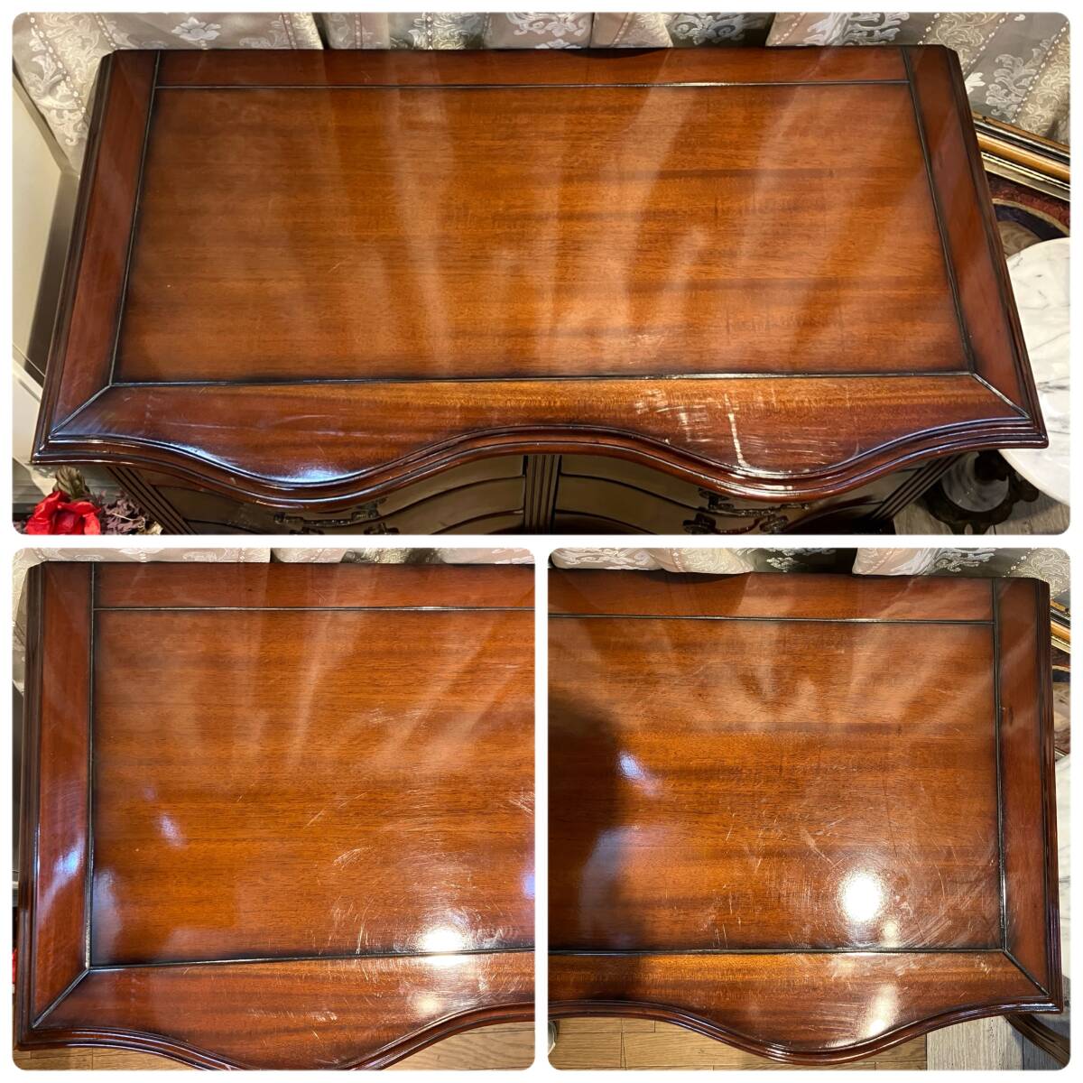 天板に擦れ傷、引出し右下内部に凹みとヒビ(亀裂)有