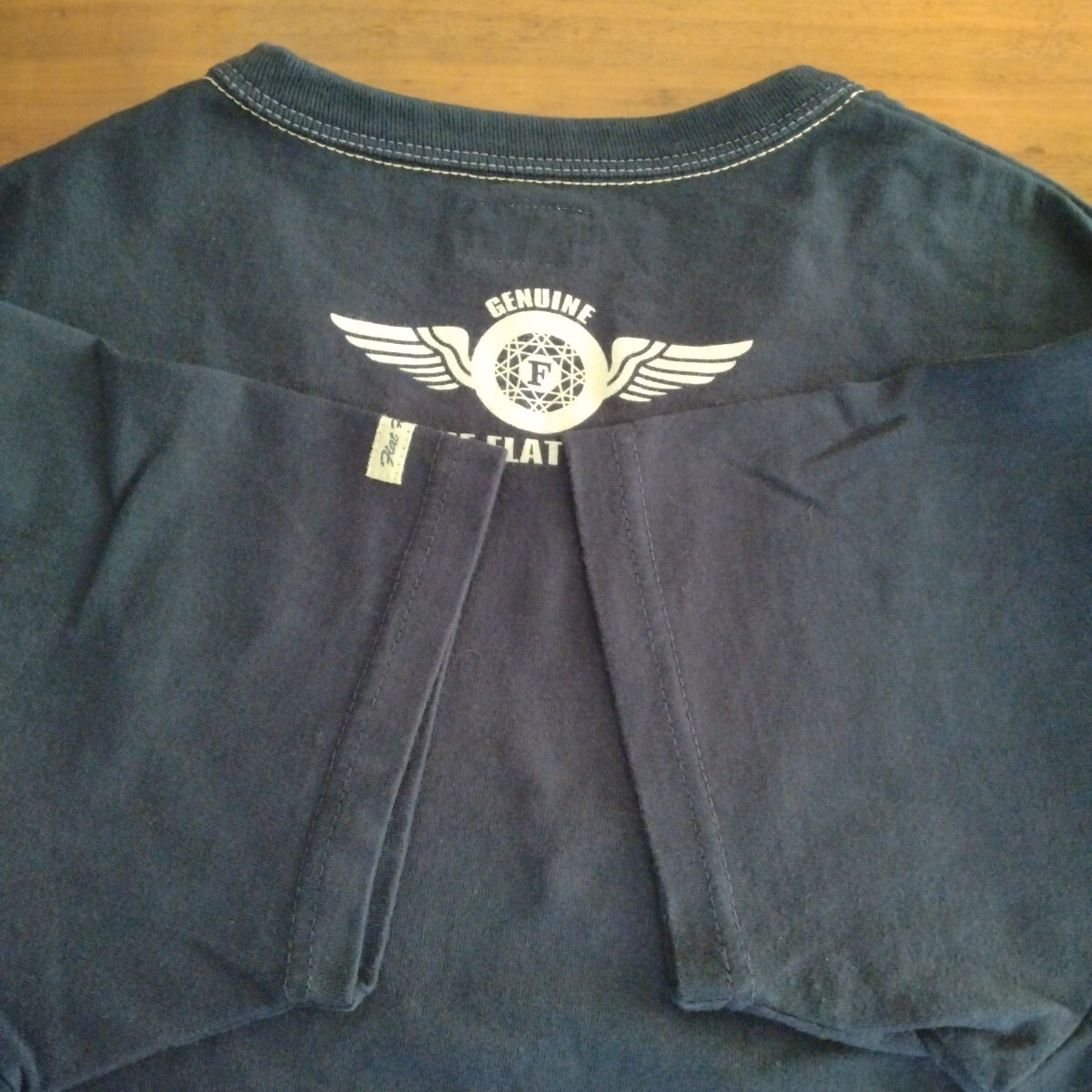 フラットヘッド FLAT HEAD 半袖Tシャツ SIZE 40 ネイビー SMALL FLYING WHEEL