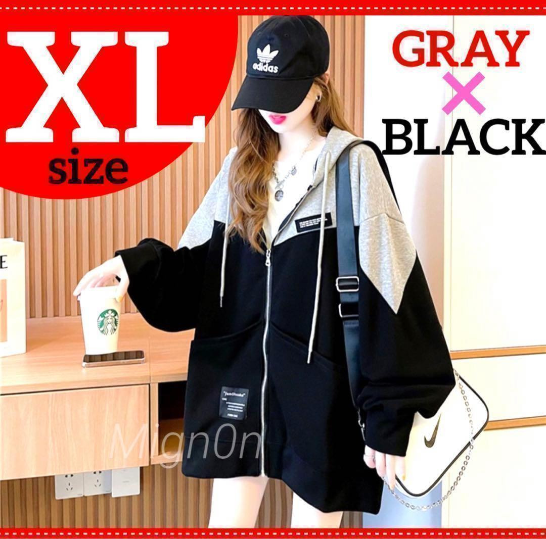 グレー×ブラック バイカラー【XL】モノトーン 切替 オーバーサイズ 羽織り 長袖 英字柄 ゆったり 男女兼用 514