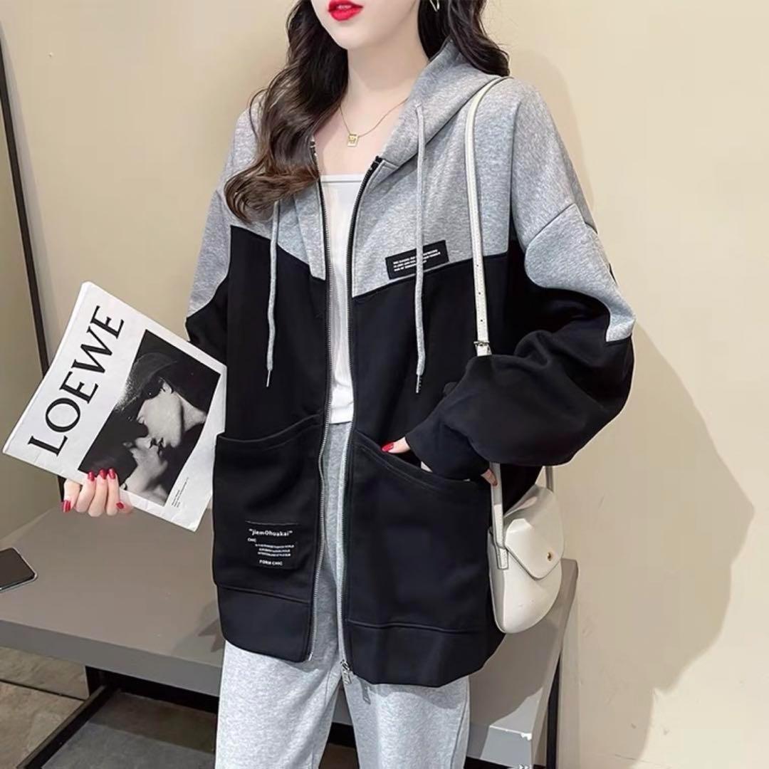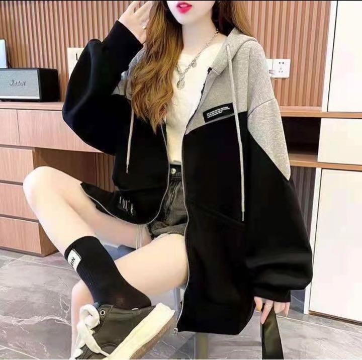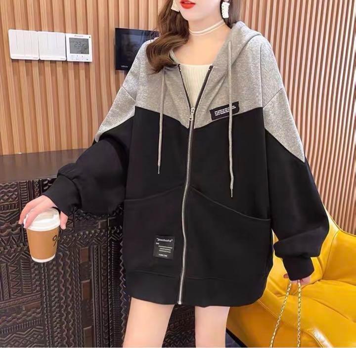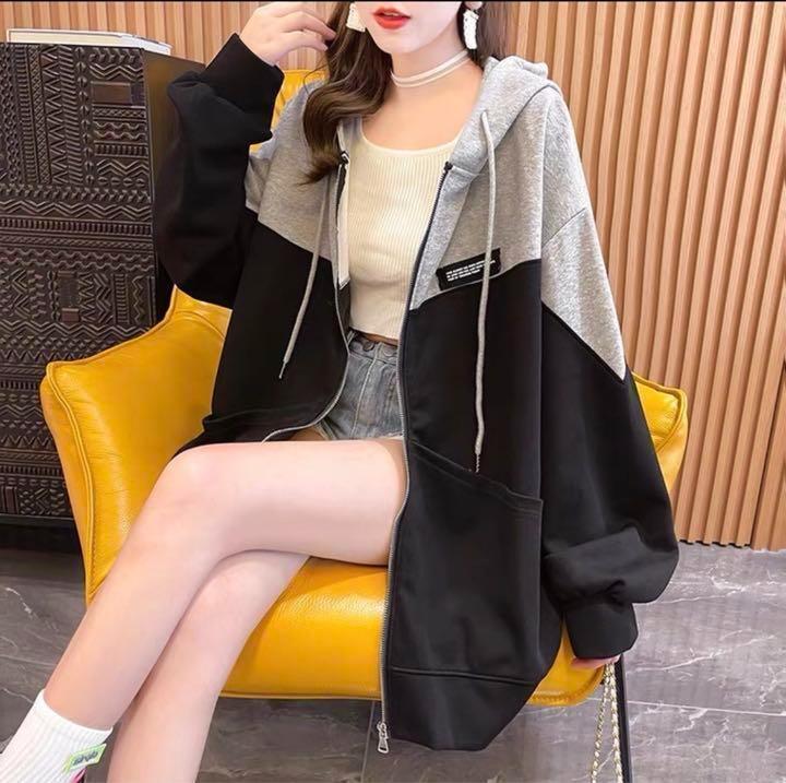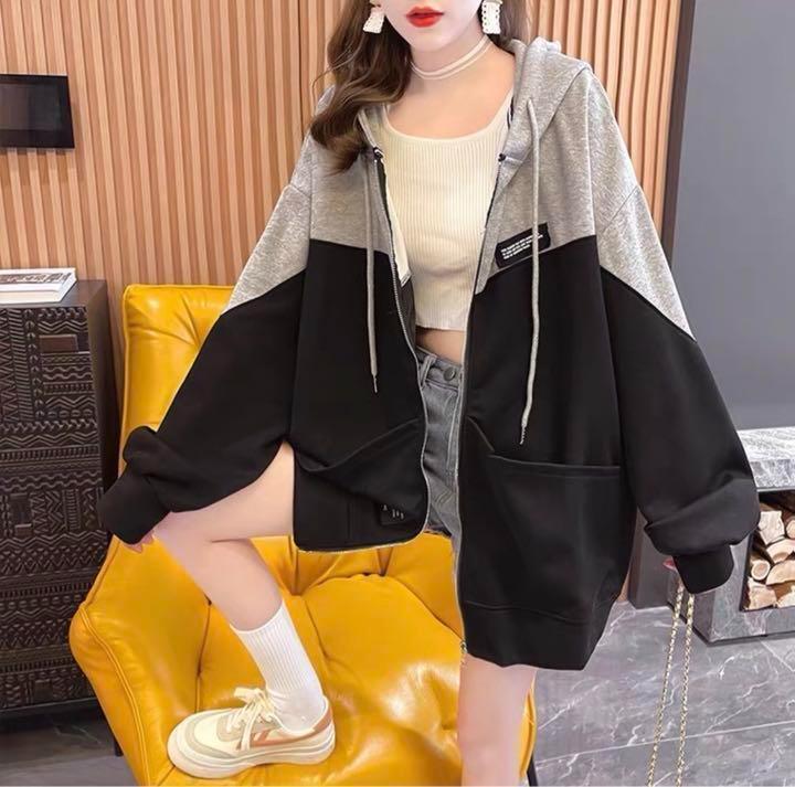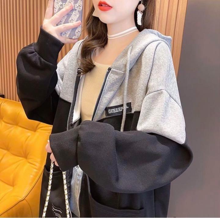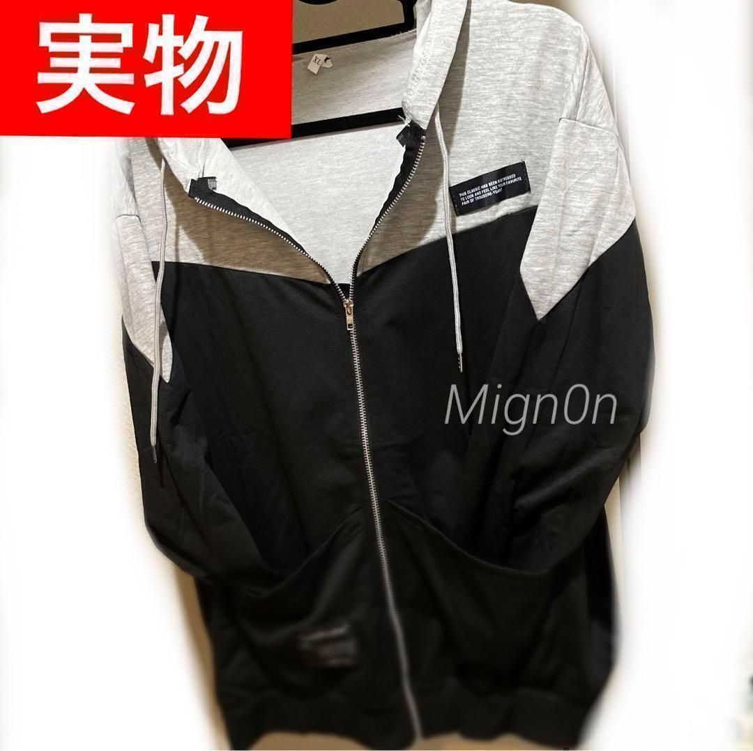 Product name: グレー×ブラック バイカラー【XL】モノトーン 切替 オーバーサイズ 羽織り 長袖 英字柄 ゆったり 男女兼用 514