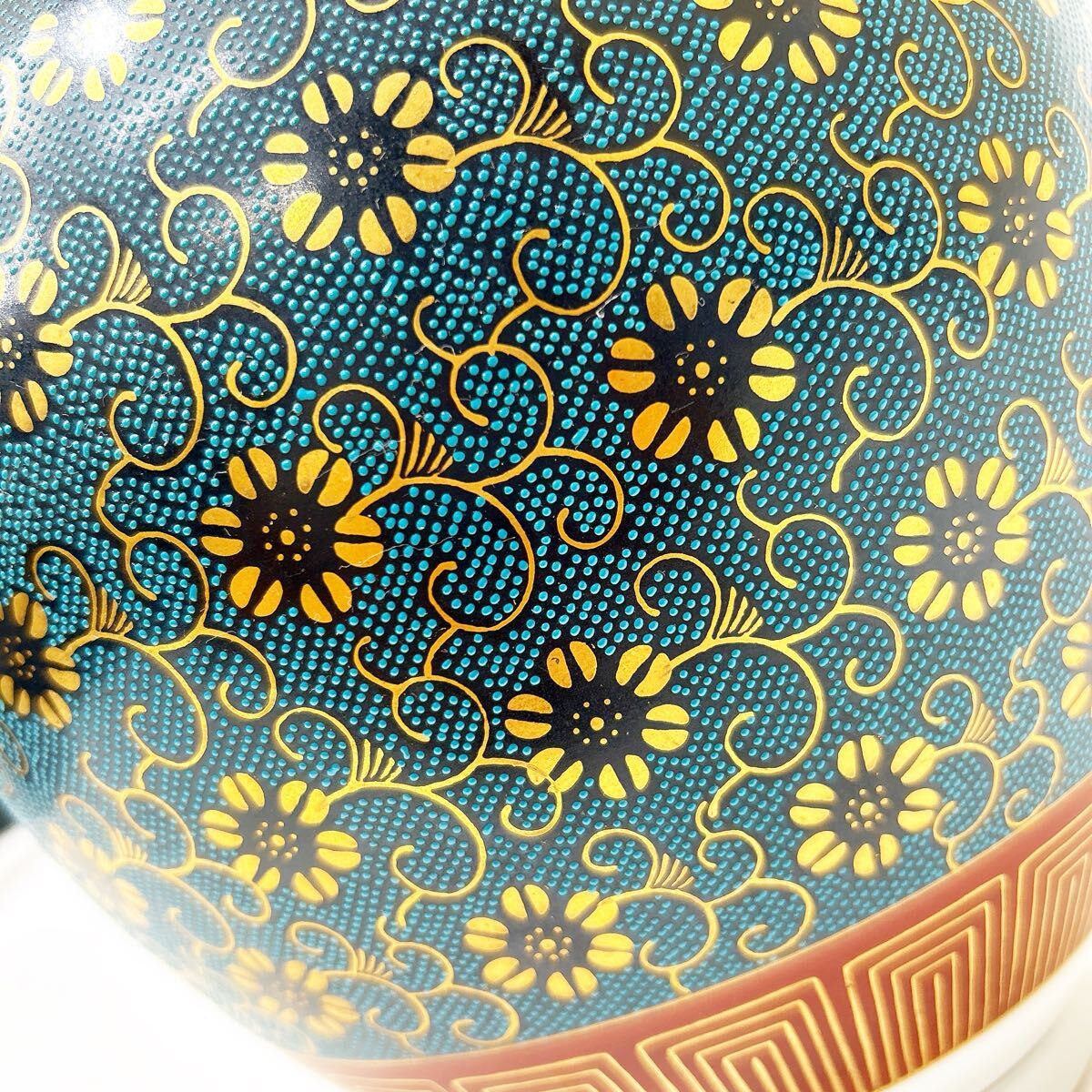 Product name: 九谷焼 寿白 金彩 青粒鉄仙 耳付 花紋 花生 花瓶 飾壺 高さ約32.5cm arc依頼星0929