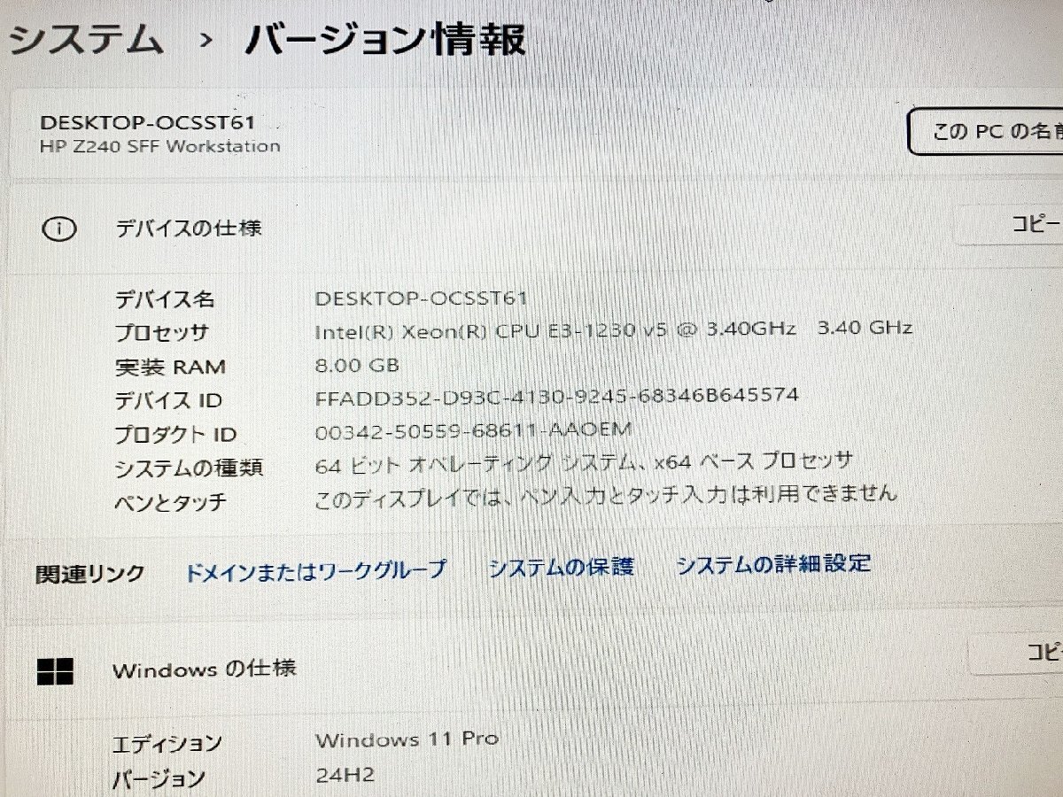 Product name: 【埼玉発送】【動作確認済】HP / HP Z240 SFF Workstation / Xeon(R) CPU E3-1230 v5 @ 3.40GHz 3.40 GHz / 8GB / HDD1TB / Windows11Pro