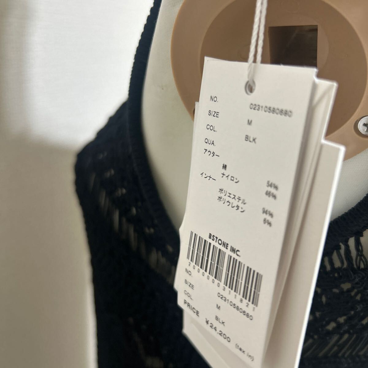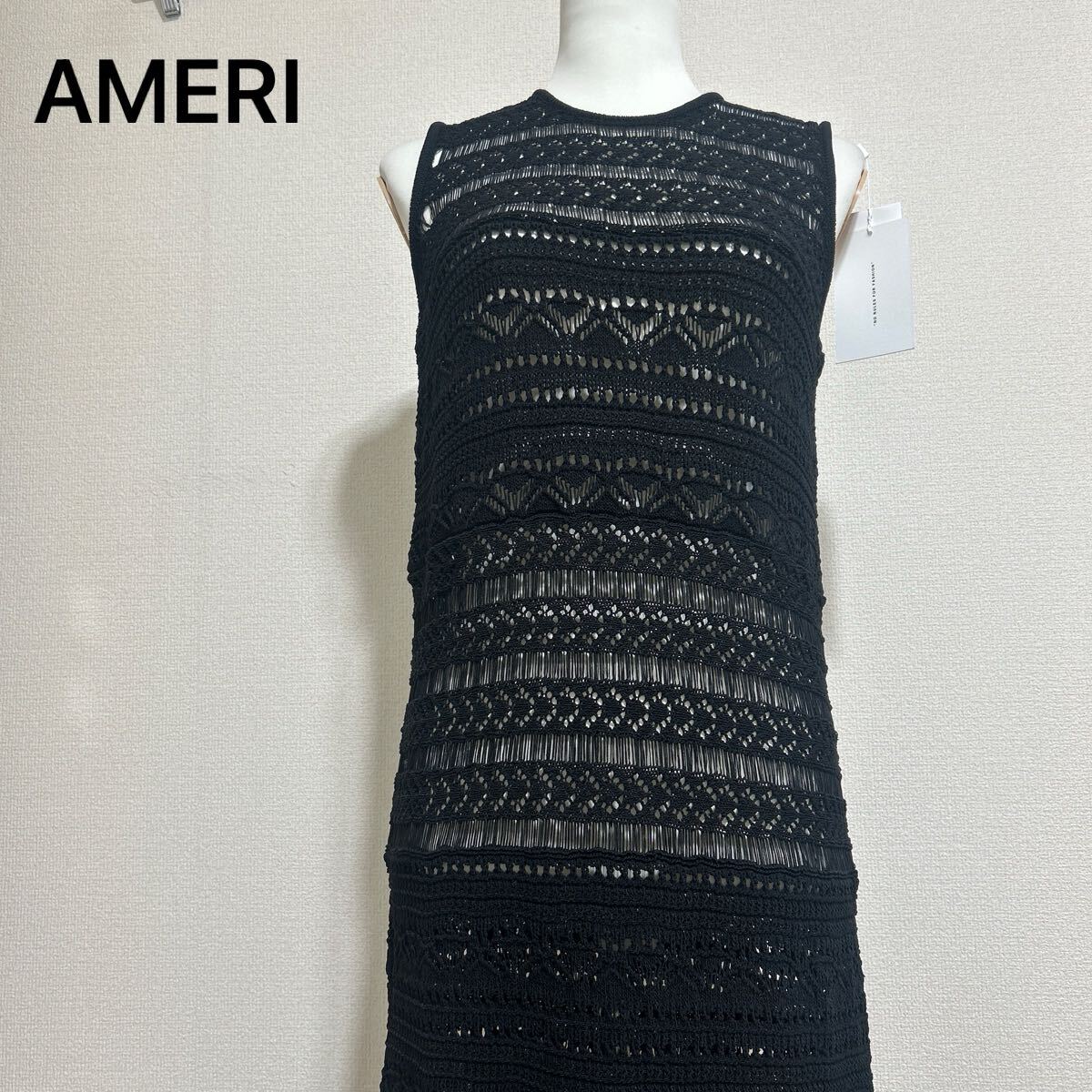 新品 タグ付き 未使用品 AMERI アメリ ワンピース ノースリーブ ニット レース フリンジ 透かし編みニット ロング丈 ブラック 黒 Mサイズ