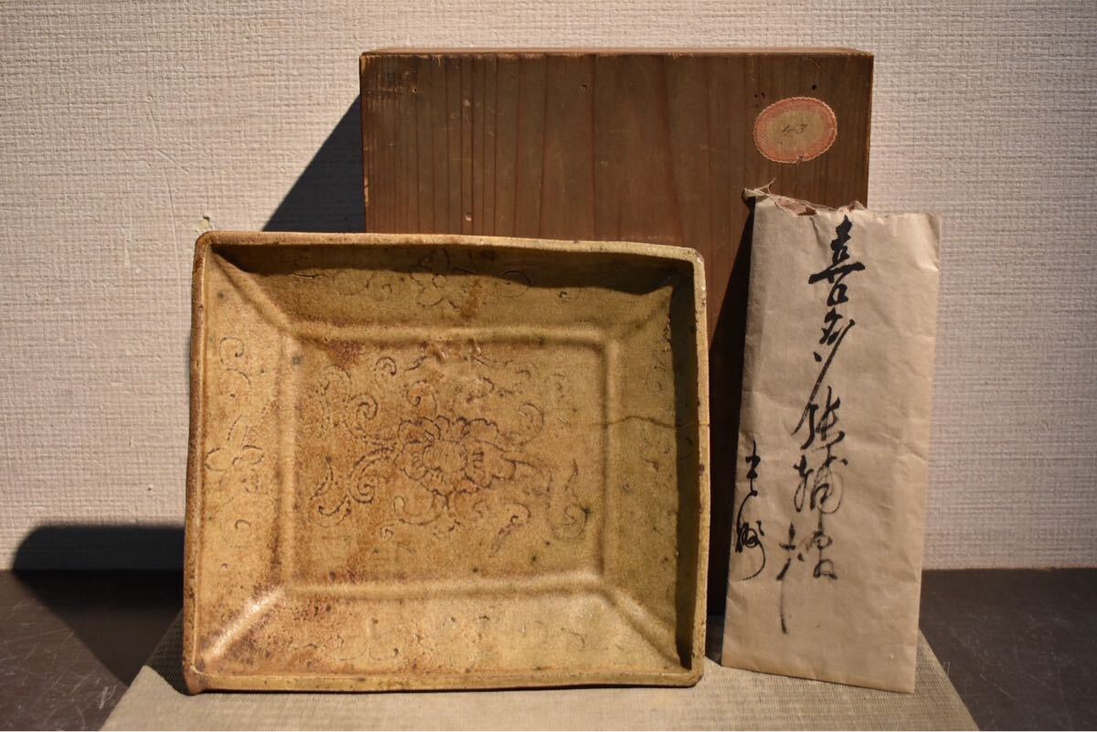 Product name: 【GE】R303【コレクター所蔵品】《名品》時代 黄瀬戸鉢 古文書付/日本美術 美濃焼 骨董品 時代品 美術品 古美術品 sh