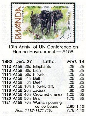 (ルワンダ)1982年人類環境会議10種完、スコット評価7.75ドル(海外より発送、説明欄参照)