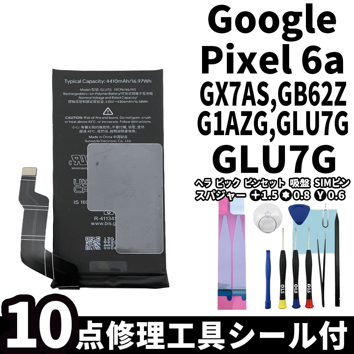 Product name: 国内即日発送! 純正同等新品! Google Pixel 6a バッテリー GLU7G GX7AS GB17L G1AZG GB62Z 電池パック 交換 内蔵battery 修理工具付き