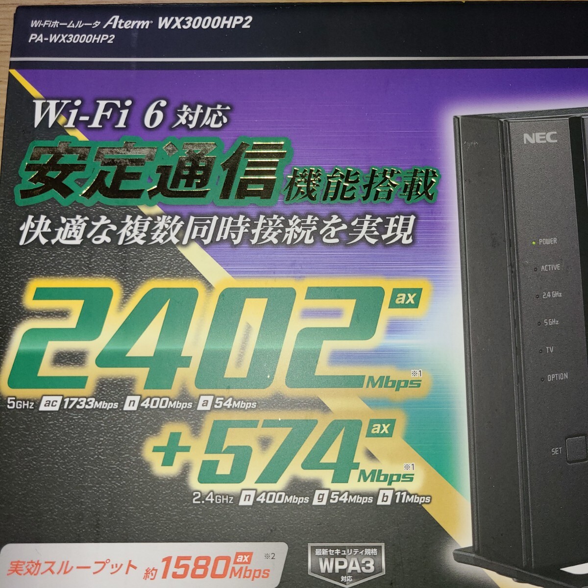 Product name: NEC Aterm WX3000HP2 無線LAN Wi-Fiルーター Wi-Fi6 11ax/ac/n/a対応