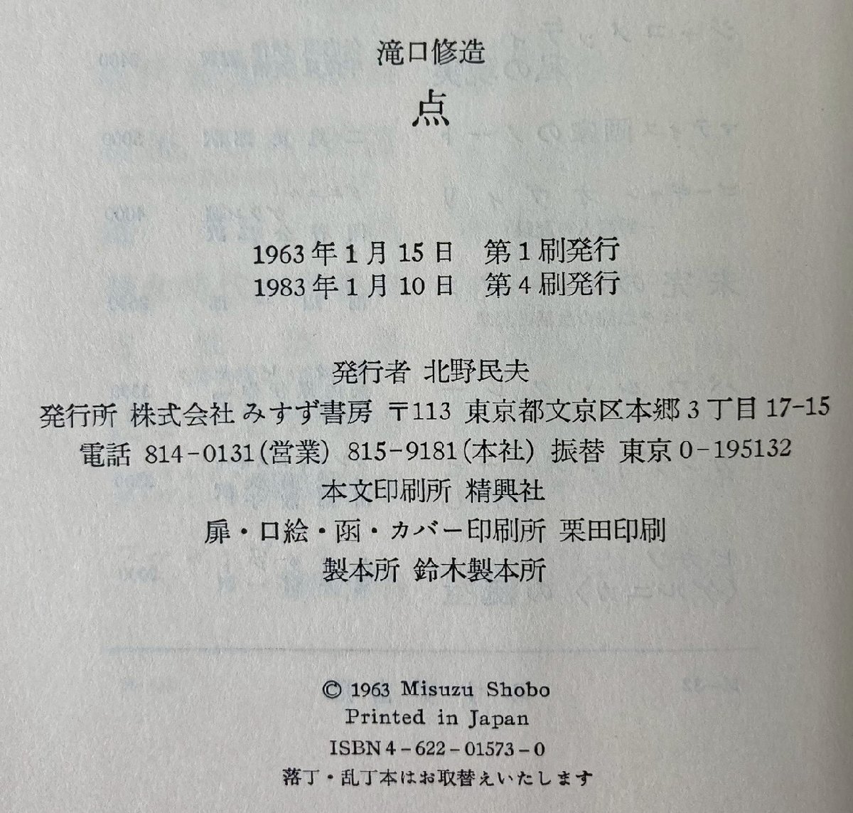 Product name: 【某家コレクション】点 滝口 修造 みすず書房 1983年発行 美術評論集 詩人 画家