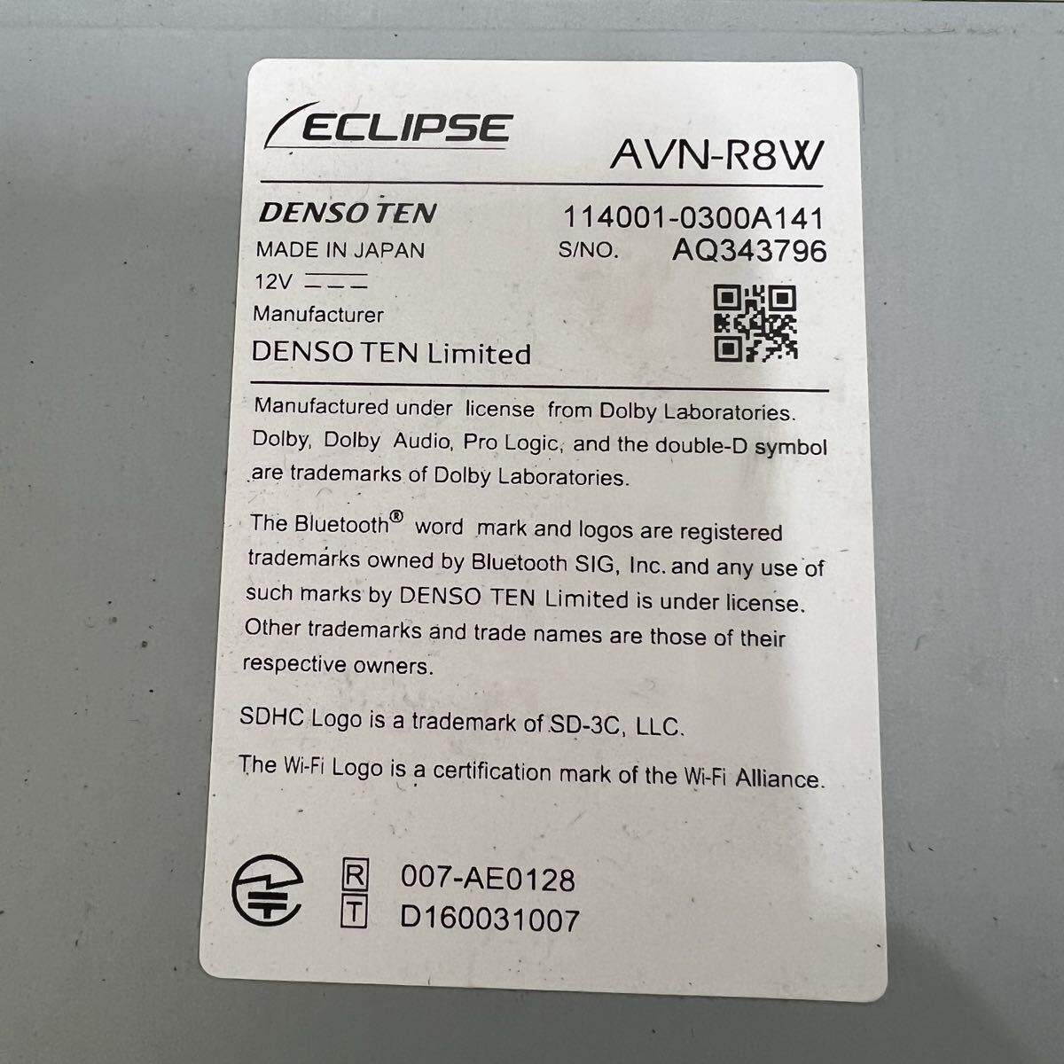 Product name: ●38 Eclipse イクリプス DENSO メモリーナビ AVN-R8W Bluetooth/CD/DVD/フルセグ・通電未確認/TOYOTAプラドに付いていました。