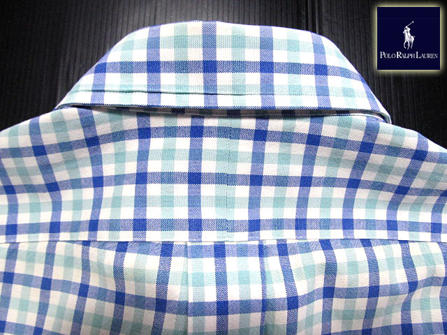 ★500円スタート!ラルフローレン RALPH LAUREN ボタンダウンシャツ 長袖 Mサイズ 希少品 ハンサムチェック ブルー×グリーン×ホワイト