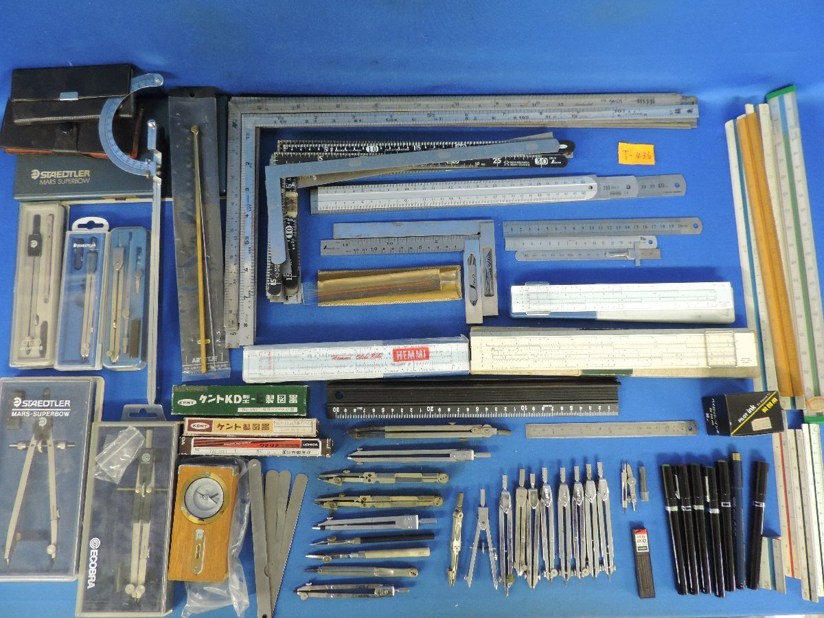 Product name: ★T―436★製図器具大量 ヘンミ 計算尺/コンパス ウチダ ケント/ペン 製図用 0.1~0.6/製図用インク 8割以上有/指金 等 まとめて[100]