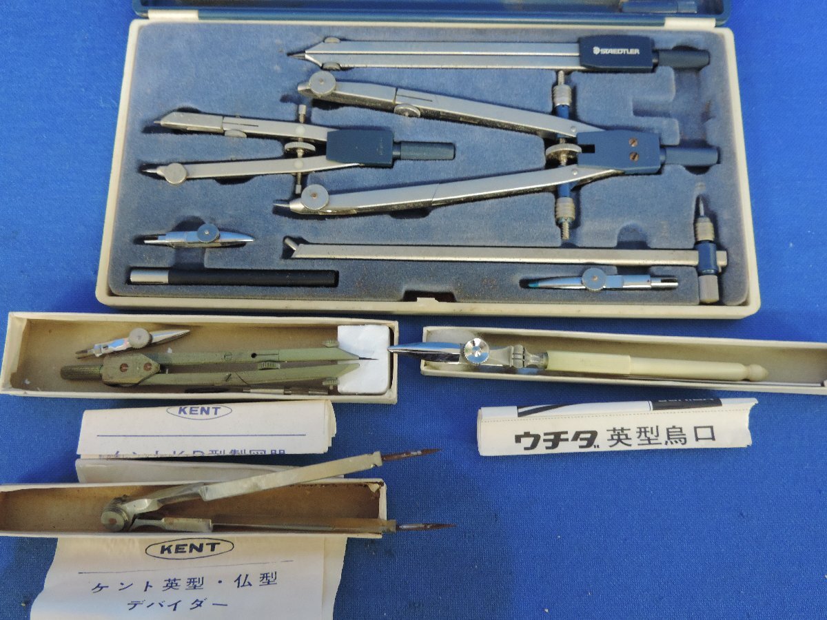 ★T―436★製図器具大量 ヘンミ 計算尺/コンパス ウチダ ケント/ペン 製図用 0.1~0.6/製図用インク 8割以上有/指金 等 まとめて[100]