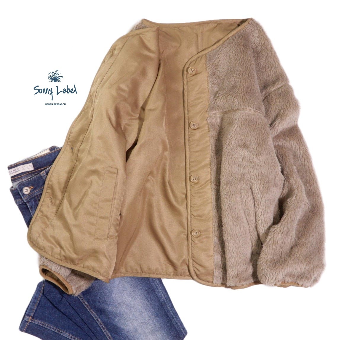 Product name: サニーレーベル アーバンリサーチ sonny label URBAN RESEARCH 可愛い☆リバーシブル ノーカラー ボア ジャケット ブルゾン FREE