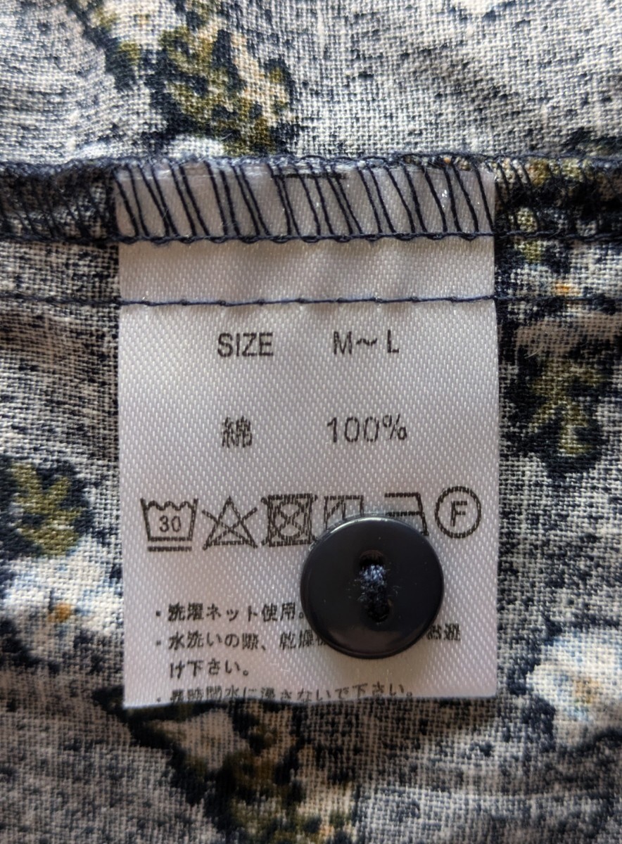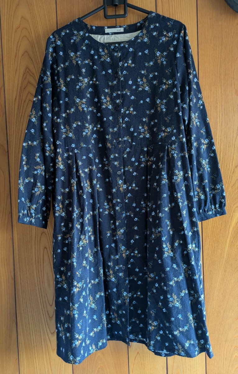 濃紺のネル地に小花模様、前ボタンの一枚です。