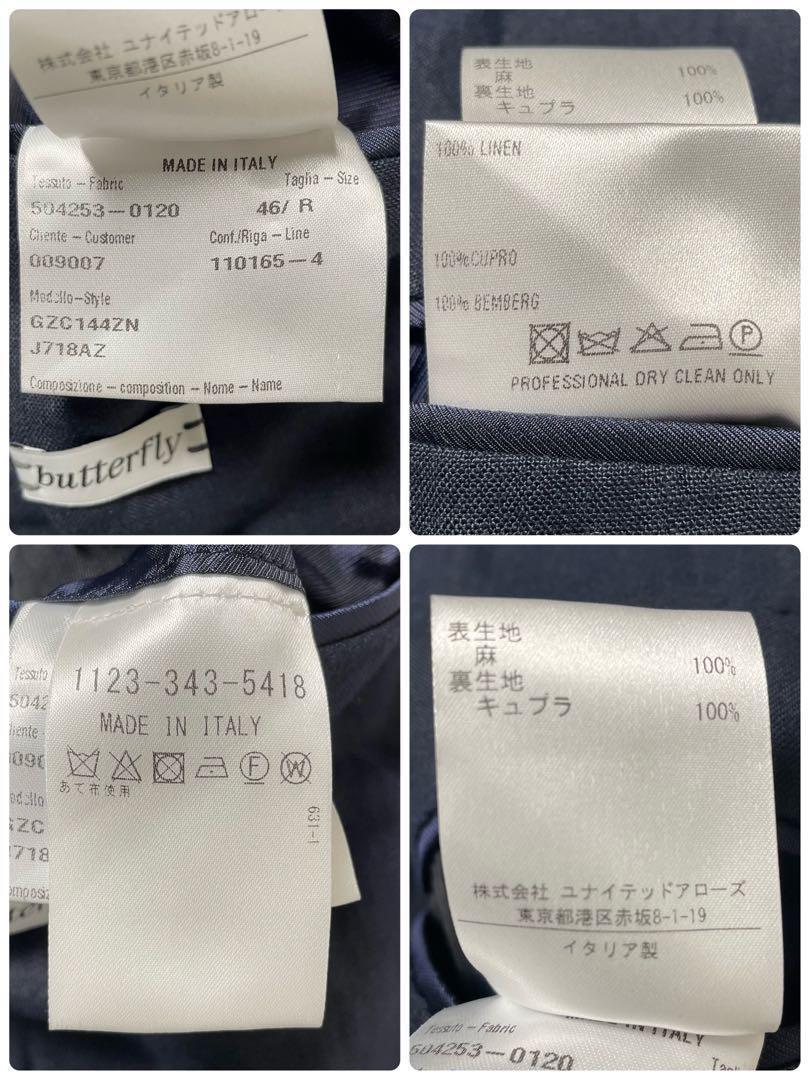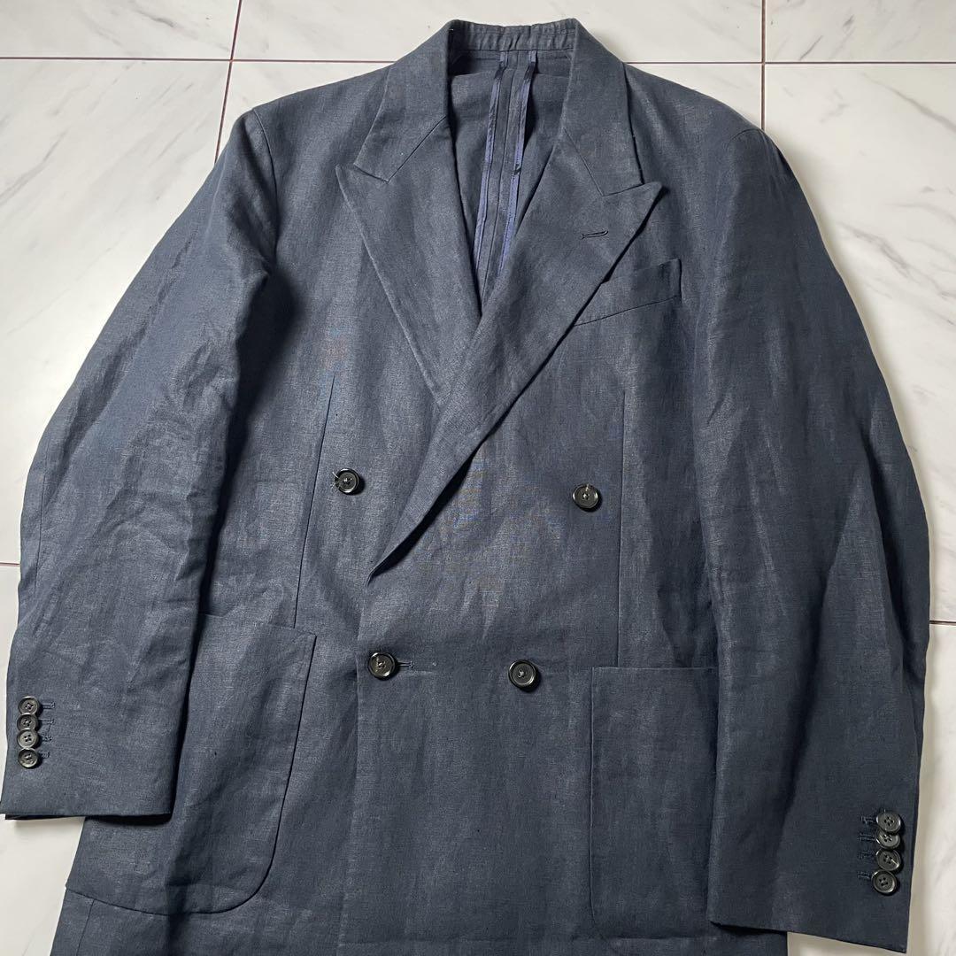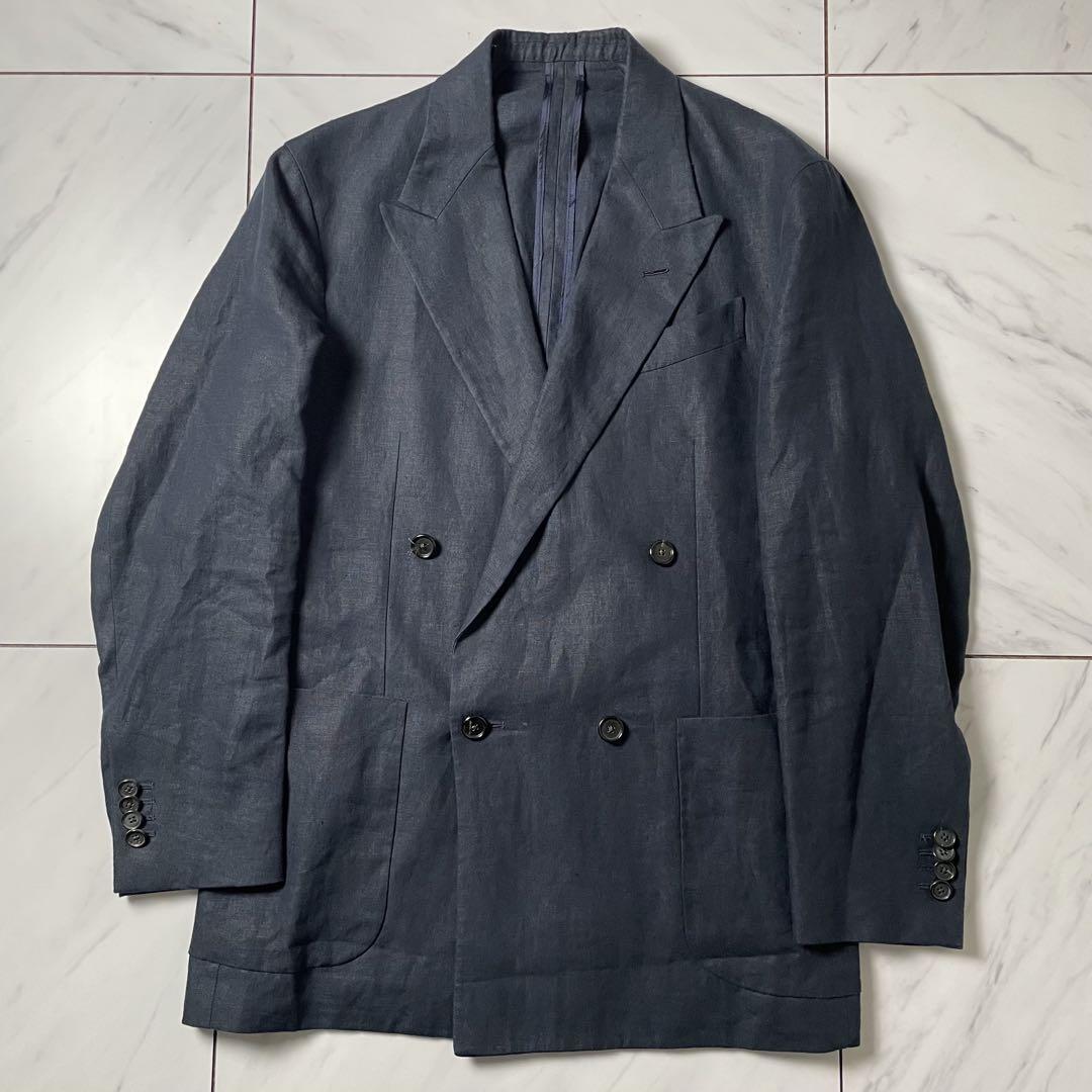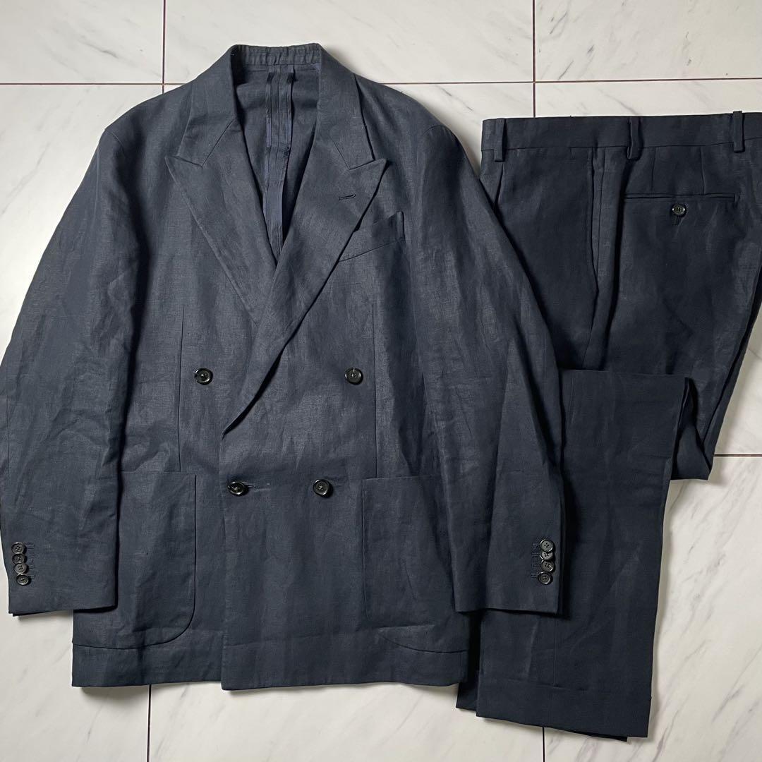 Product name: 現行 Caruso butterfly リネン100% ダブル スーツ セットアップ 上下 ピークドラペル カルーゾ バタフライ ネイビー 紺 46 M相当