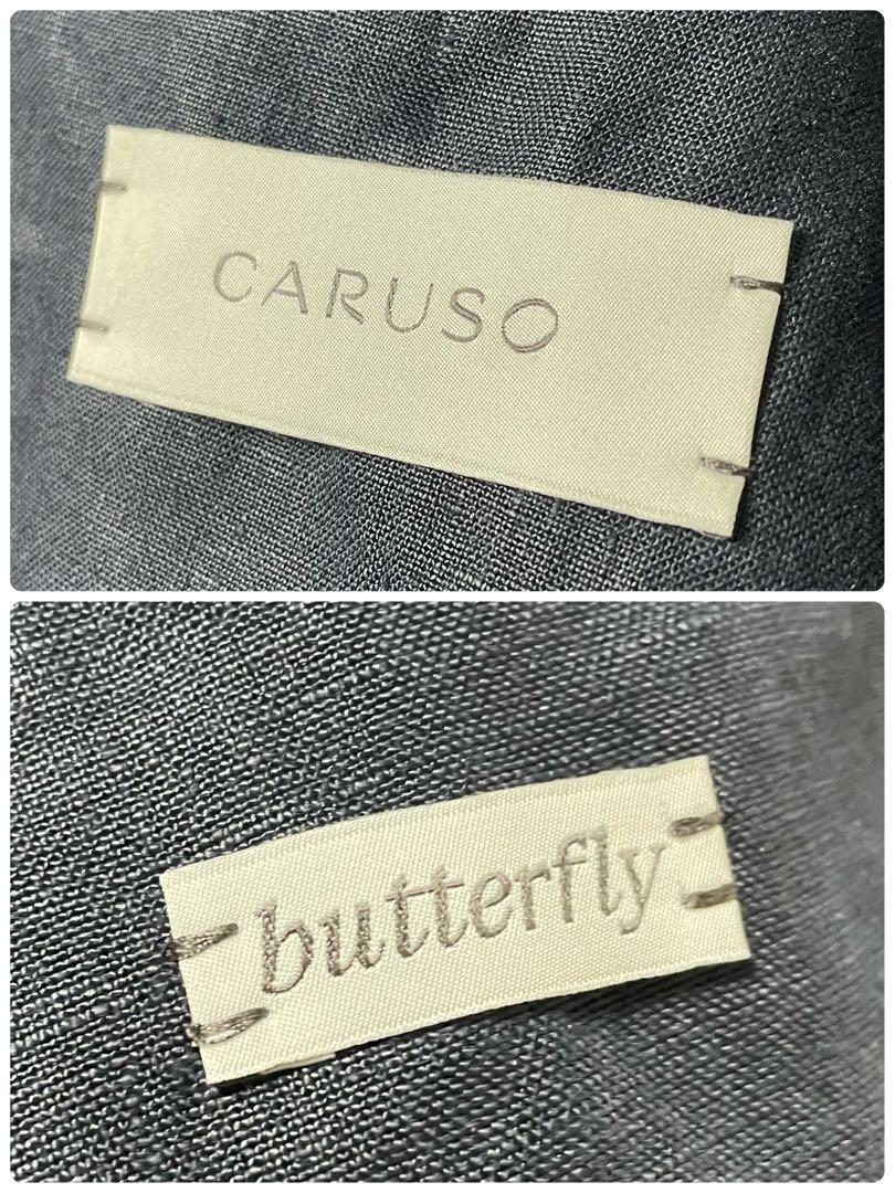 現行 Caruso butterfly リネン100% ダブル スーツ セットアップ 上下 ピークドラペル カルーゾ バタフライ ネイビー 紺 46 M相当