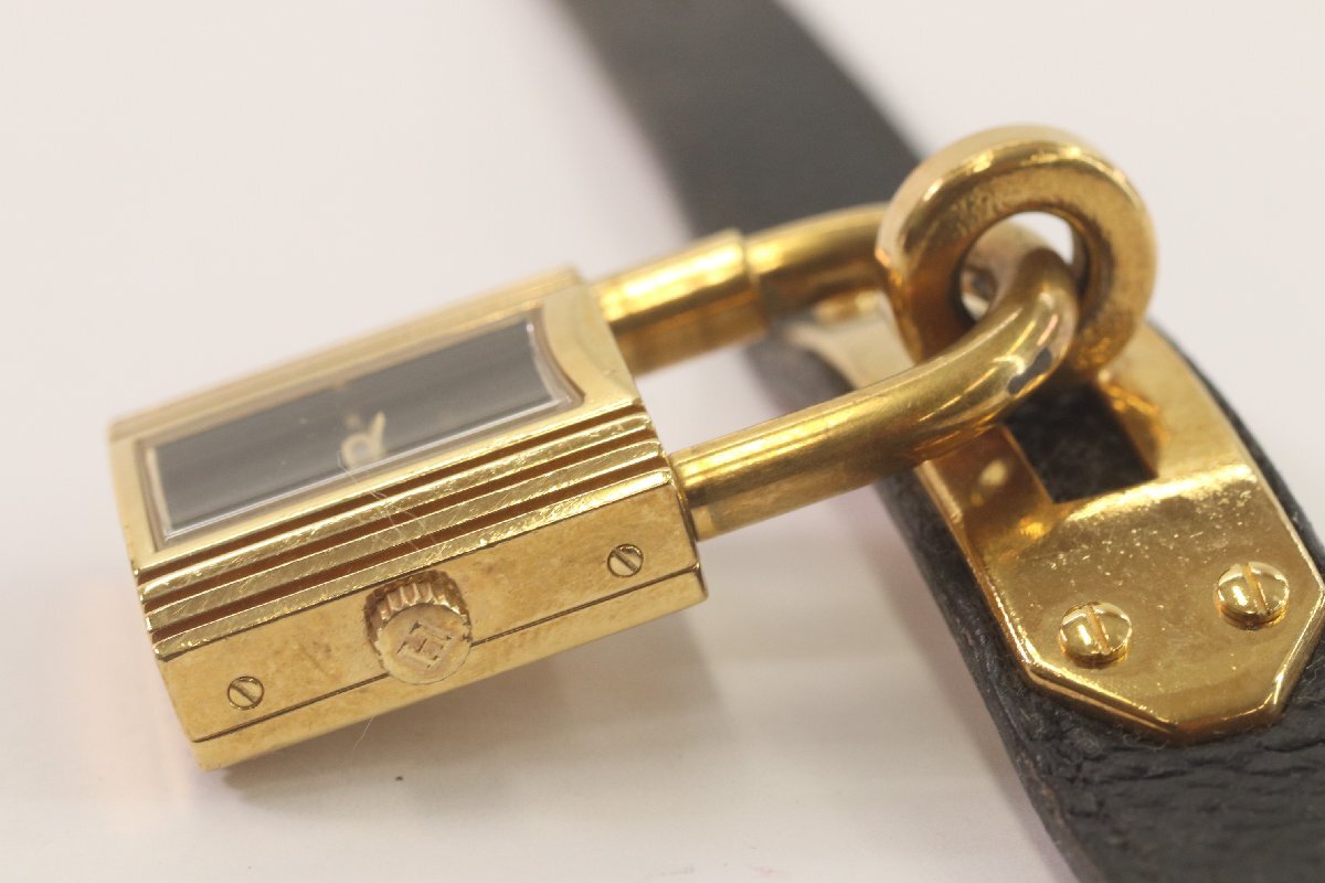 HERMES エルメス ケリーウォッチ クォーツ レディース 腕時計 ゴールドカラー ブラックベルト 〇Z刻印