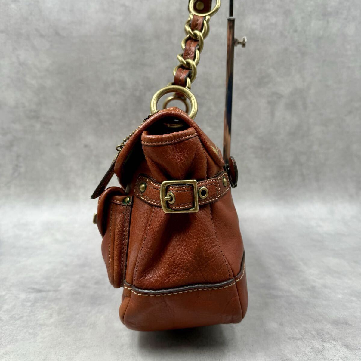 65周年記念モデル■COACH コーチ レガシー ショルダーバッグ ハンドバッグ チェーン レザー シグネチャー ターンロック Y2K ブラウン