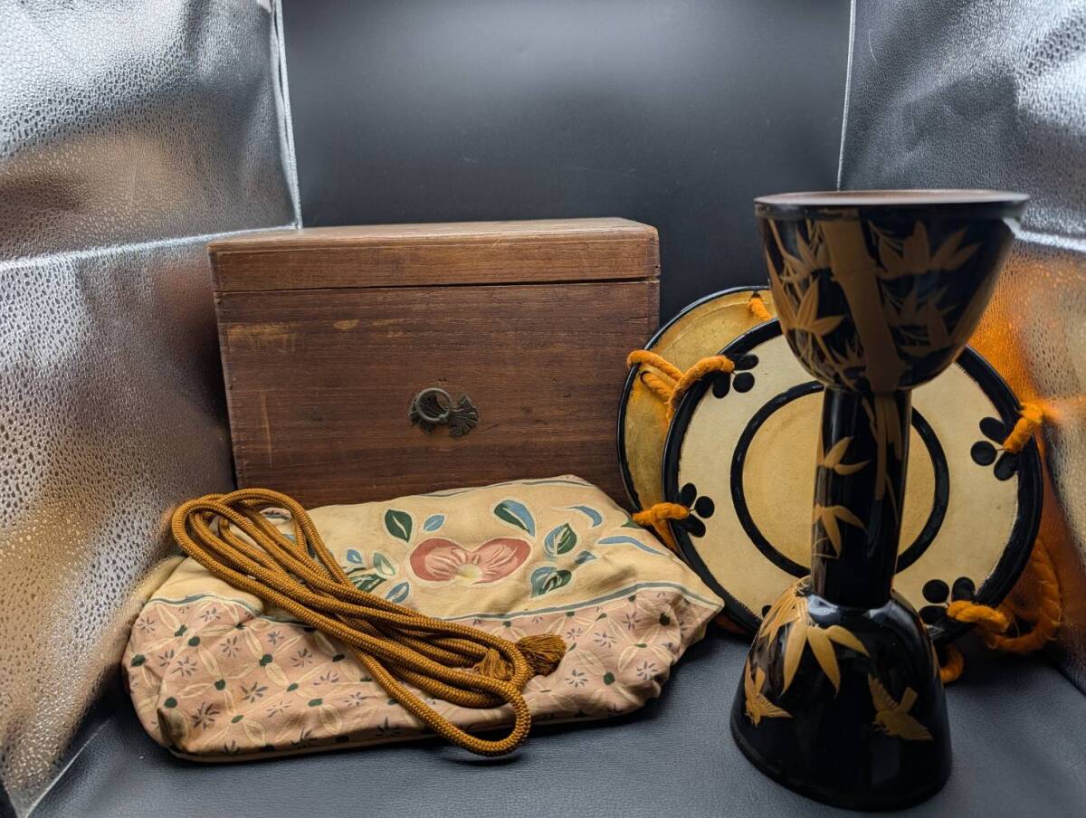 Product name: H/K 時代物『能楽長唄太鼓 金彩 鳥 竹 紋様 鼓』雅楽 能楽 小鼓 和楽器 和風 楽器 太鼓 こづつみ 骨董 日本 伝統 文化 工芸 木製 蒔絵
