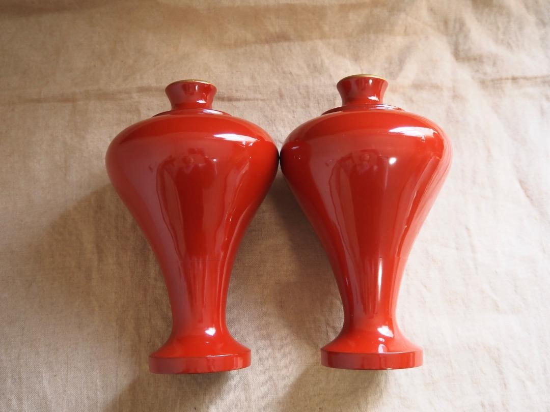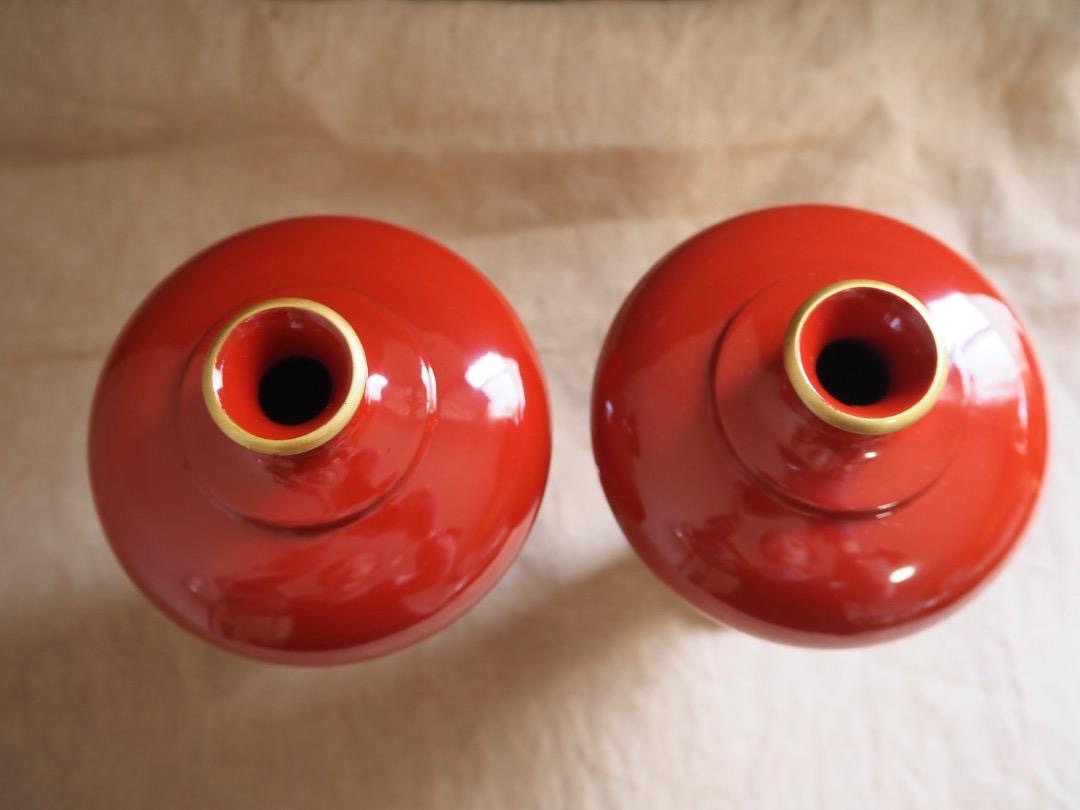 Product name: 【OAN】漆芸 朱塗 朱漆塗 金縁 御神酒 瓶子 1対 共箱付 骨董 古美術 古道具 古民藝 茶道具 懐石 古玩 漆器 へいし 酒器 神社 神祭具 天然木
