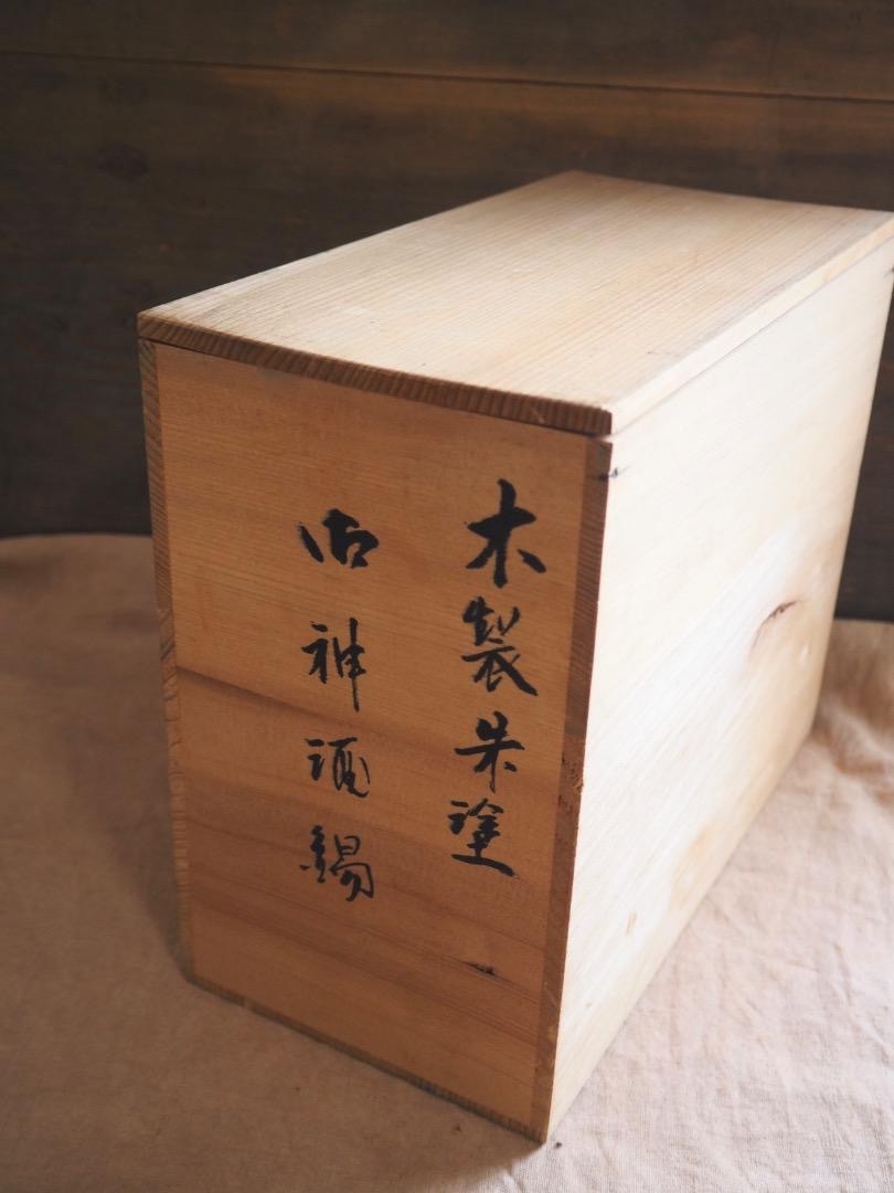 【OAN】漆芸 朱塗 朱漆塗 金縁 御神酒 瓶子 1対 共箱付 骨董 古美術 古道具 古民藝 茶道具 懐石 古玩 漆器 へいし 酒器 神社 神祭具 天然木
