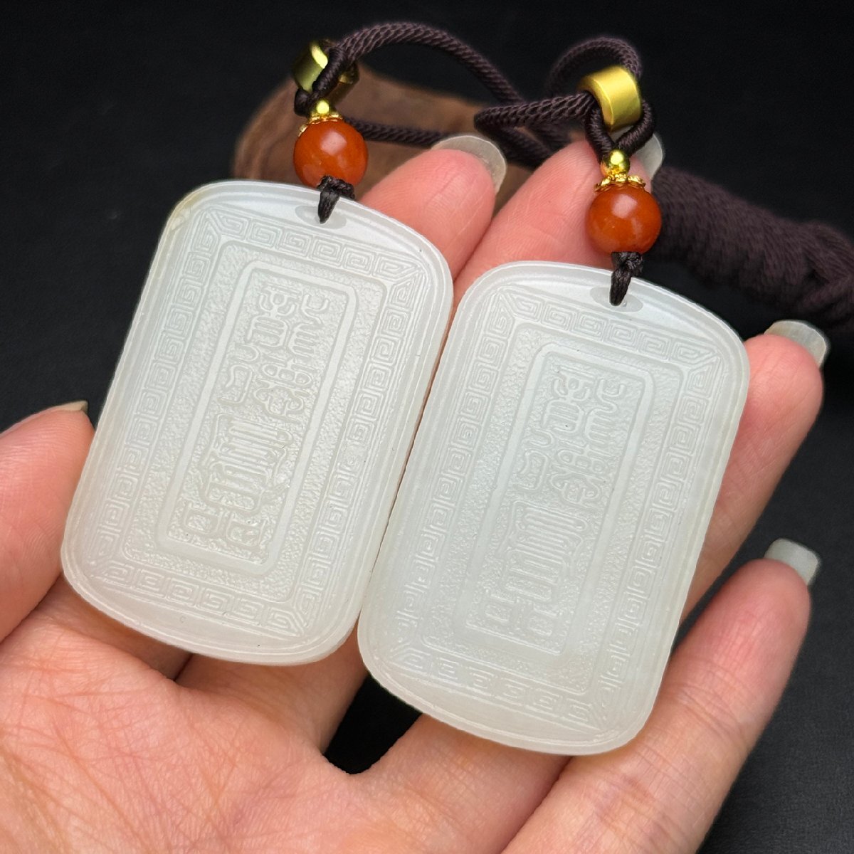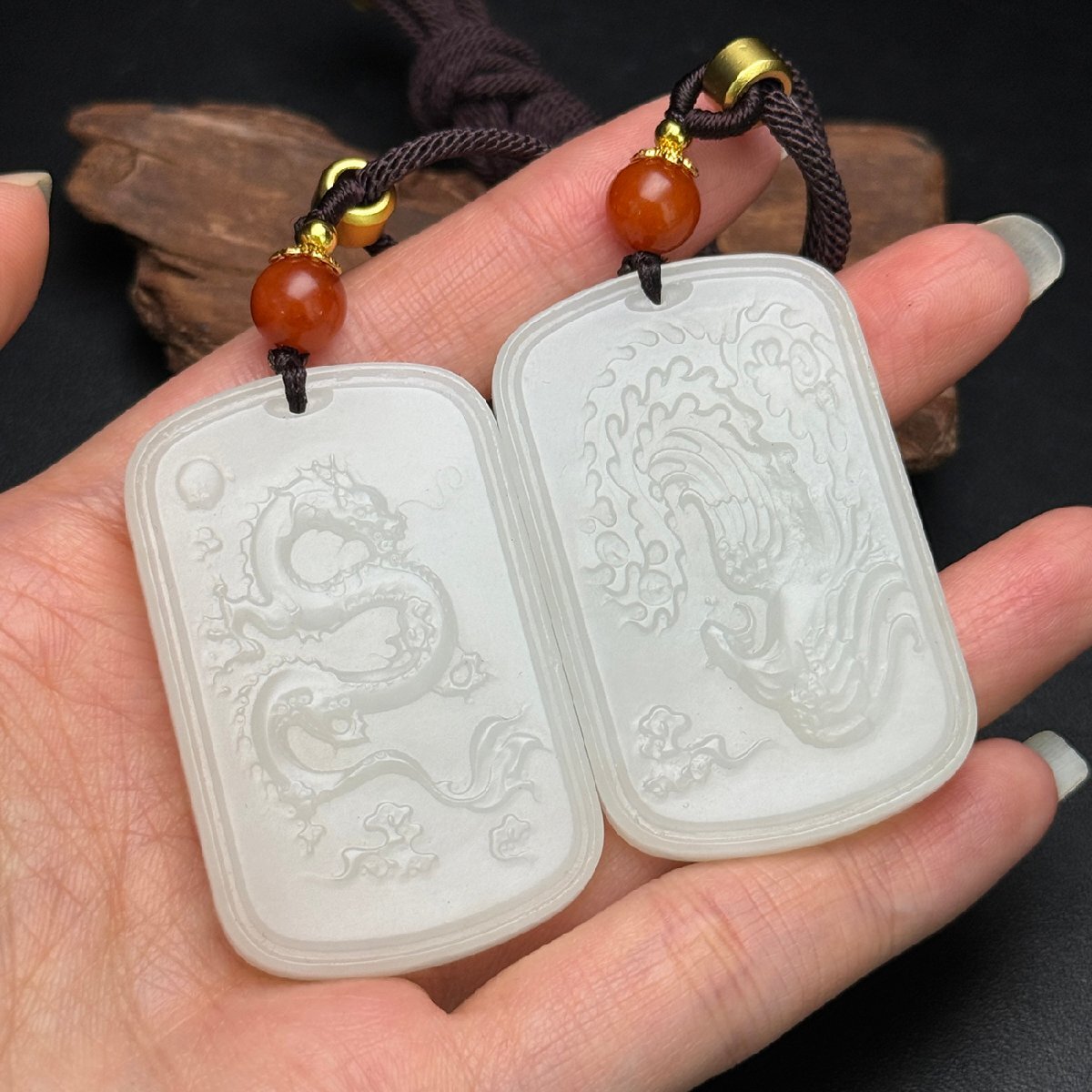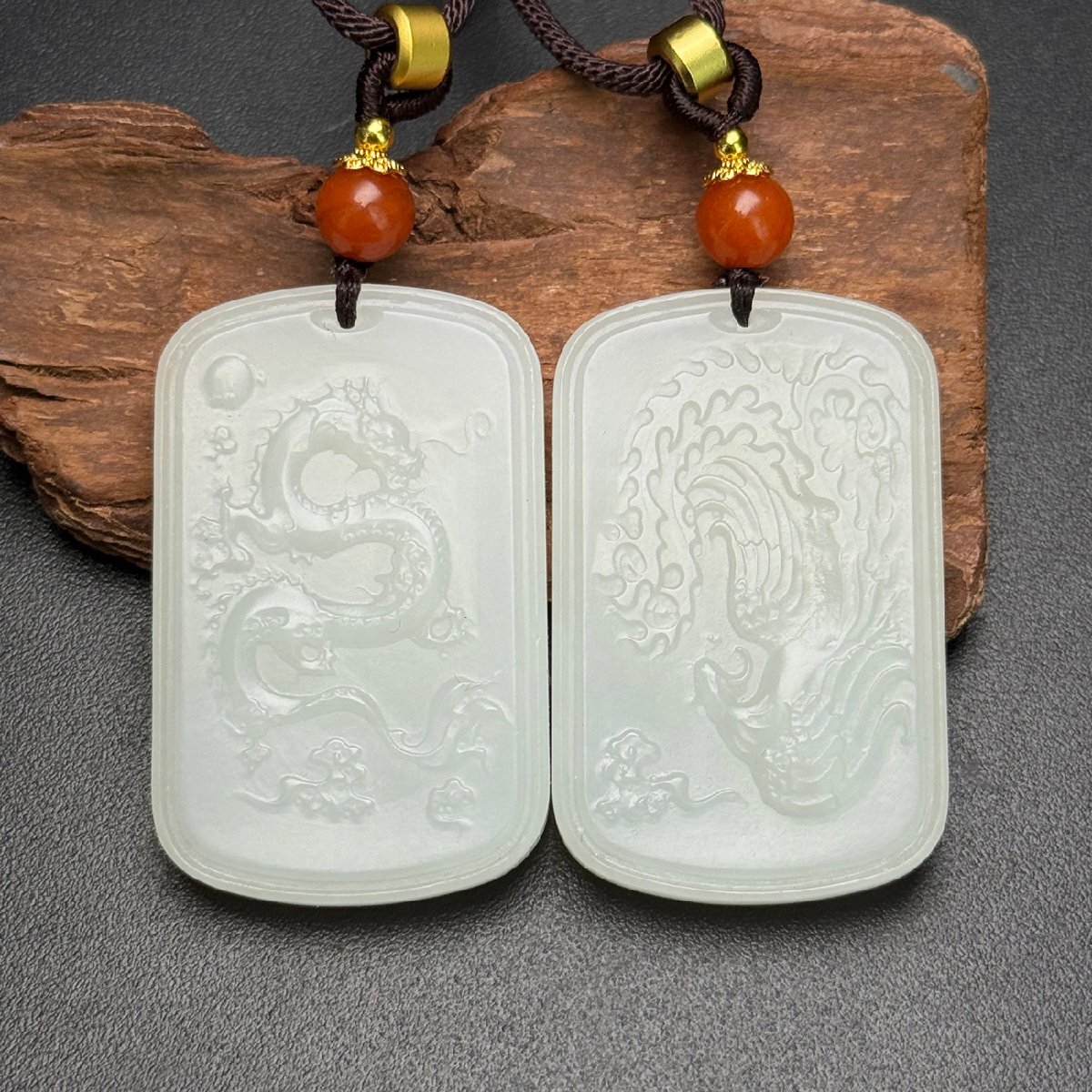 Product name: 【安】清時代 和田玉 龍鳳紋牌一対 極細工 古置物 古擺件 中国古美術 古美味 時代物 古董品 268