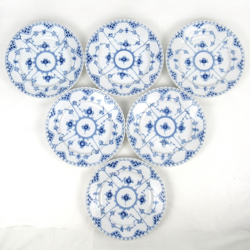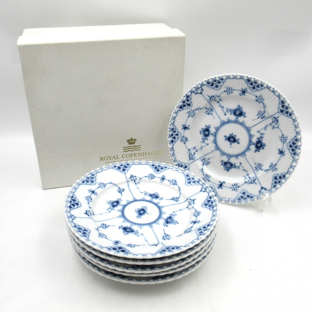 1円〜 Royal Copenhagen ロイヤルコペンハーゲン ブルーフルーテッド フルレース 約20cm プレート 計6点 箱付 4238205
