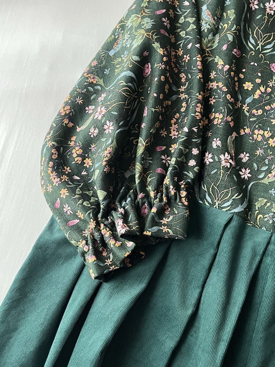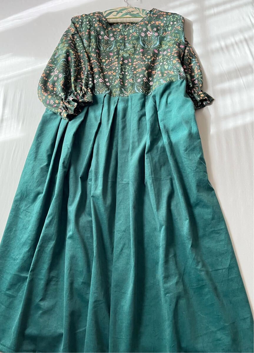 Product name: ハンドメイドワンピース バニラン織 ゲリーン×コーディロイグリーン シームポケット付き