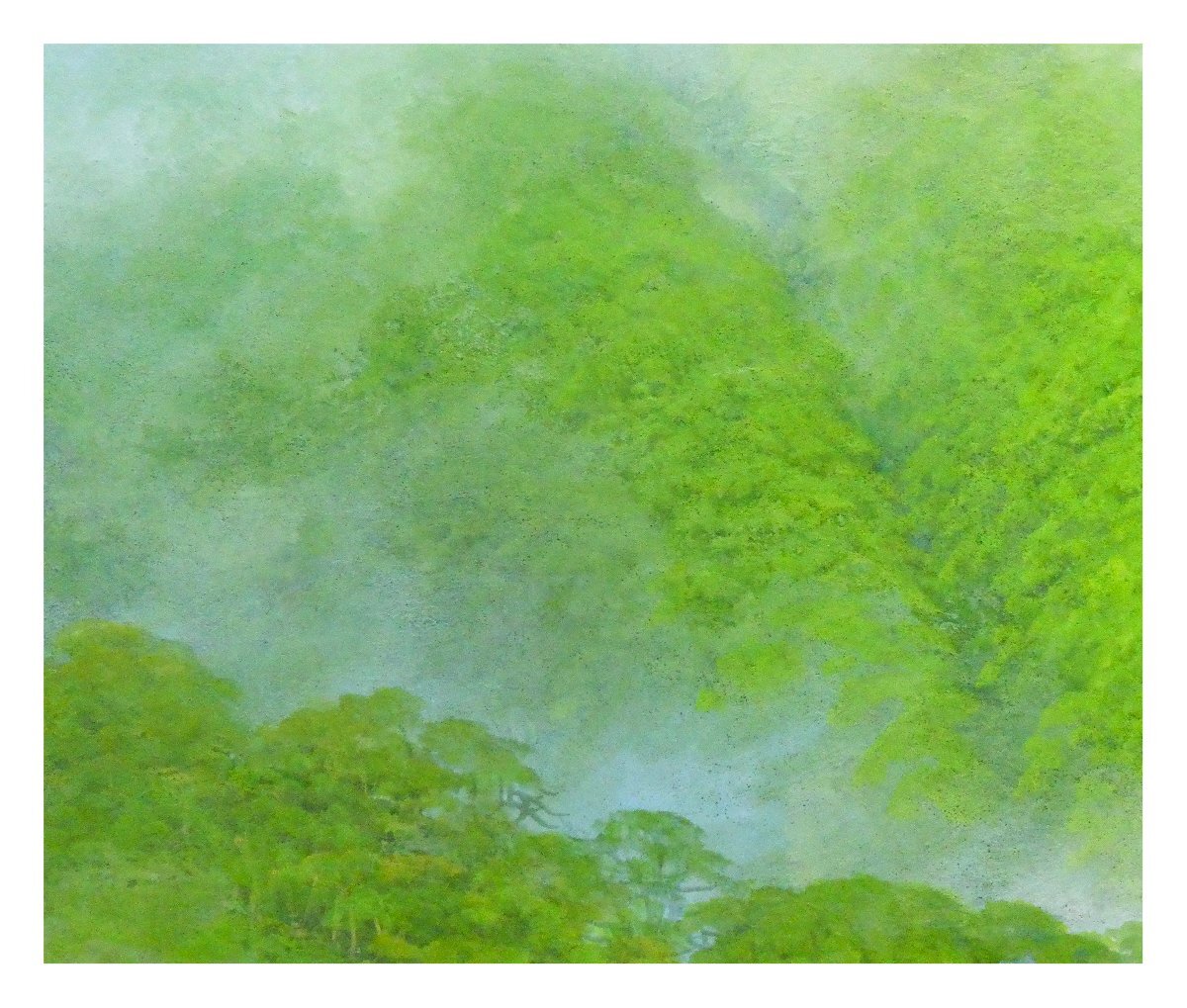 一面に広がる目が覚めるような爽やかな緑と、その静けさの中に響き渡る滝の音が聞こえてくるようです。