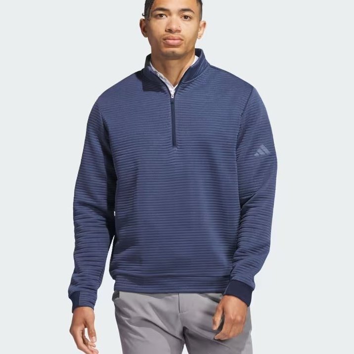 撥水性能ゴルフプルオーバー。テクスチャー加工されたジャカードのおかげで快適さと暖かさを追加します。