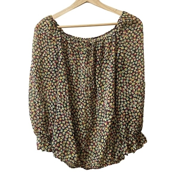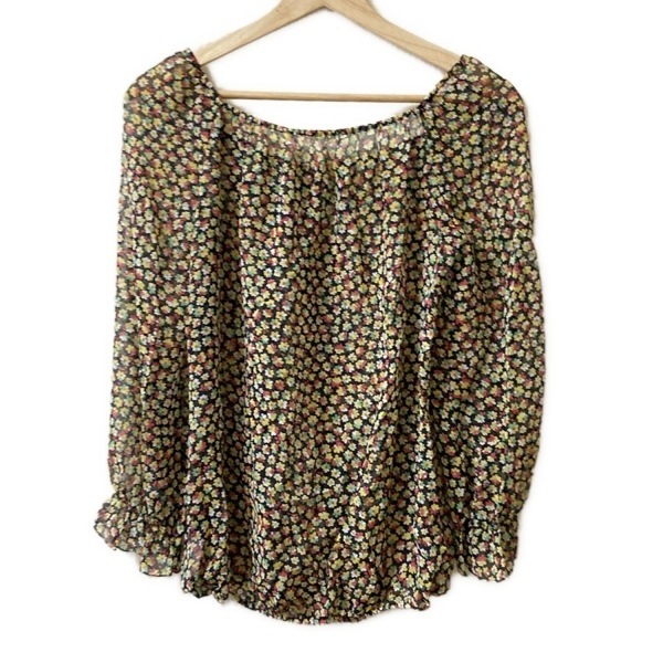 Product name: エポカ EPOCA 長袖カットソー サイズ40 M - 黒×イエロー×マルチ レディース クルーネック/シースルー/花柄 美品 トップス