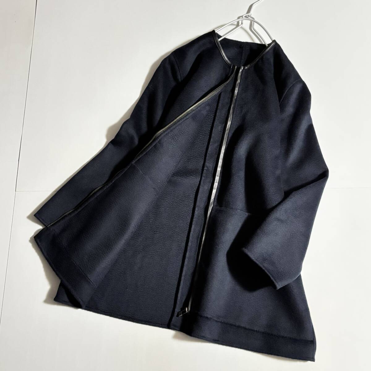 DAMA ダーマ サイズ2 // カシミヤミックス 濃紺系 フルジップ 部分羊革・ラムレザー ハーフコート ⑥