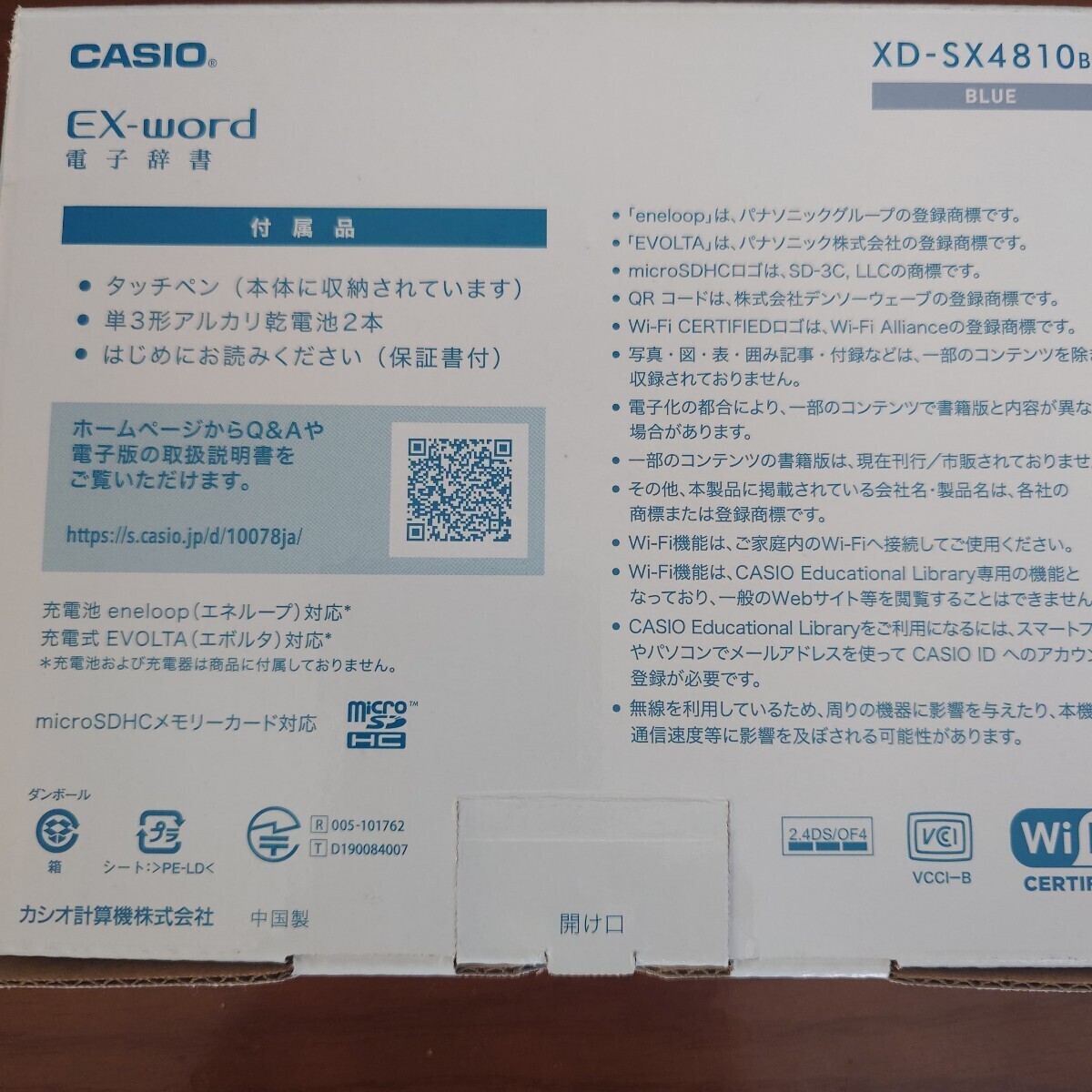 Product name: 新品未開封 CASIO電子辞書XD-SX4810BU [エクスワード XD-SX4810 ブルー 高校生モデル]