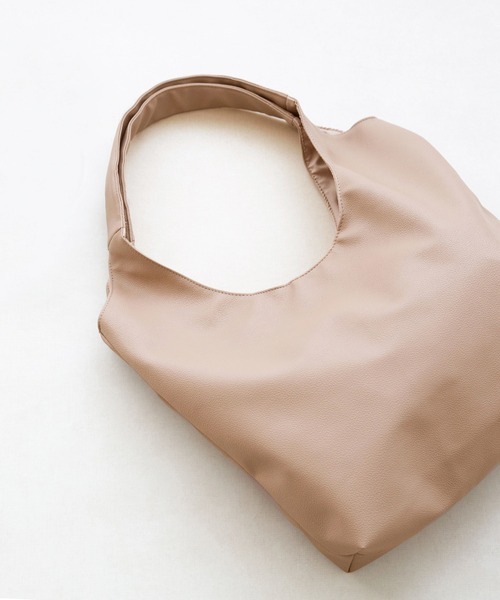 『本革風フェイクレザーとくすみカラーが大人かわいい ソフトラウンド肩かるトート』