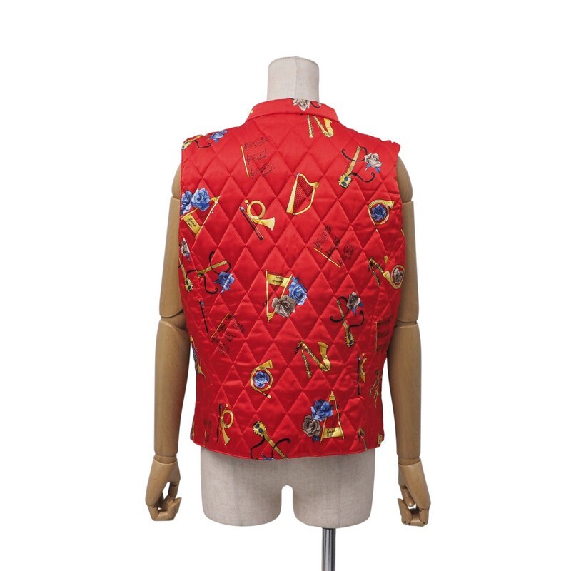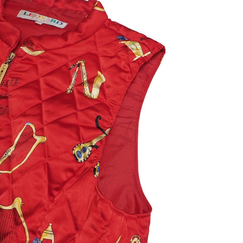 MI2098〇LEONARD SPORT レオナール スポーツ*キルティング 中わた 花柄/楽器柄/音符柄*ジレ ベスト*サイズL*レッド系