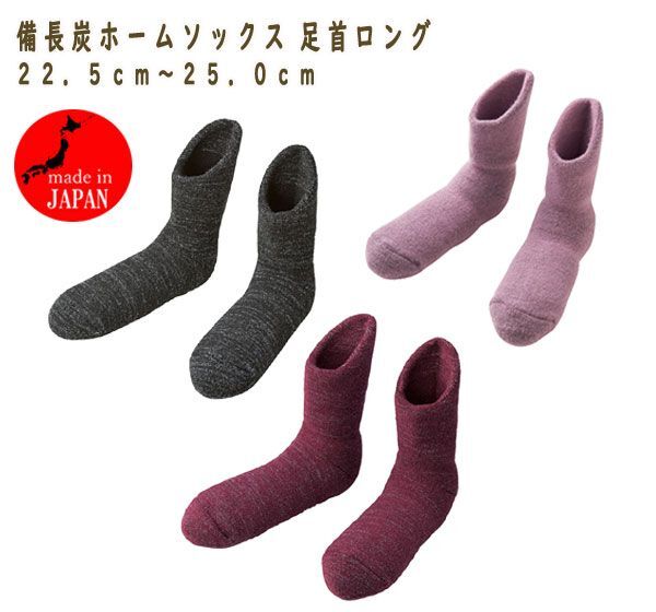 老舗靴下メーカーの 備長炭ホームソックス 足首ロング