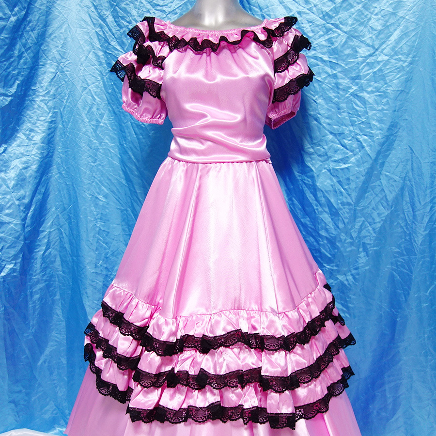 Product name: 光沢 サテン ナイロン つるつる てろてろ フリル カラー セットアップドレス 大きいサイズ ピンク