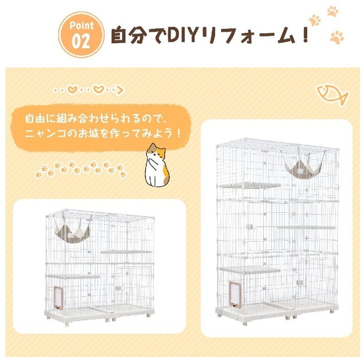 Product name: 【国内発送】猫 ケージ キャットケージ 2段 幅広設計 自由組み合わせ トレー付き 猫ドア付き ハンモック付き 保護 脱走防止 スチール
