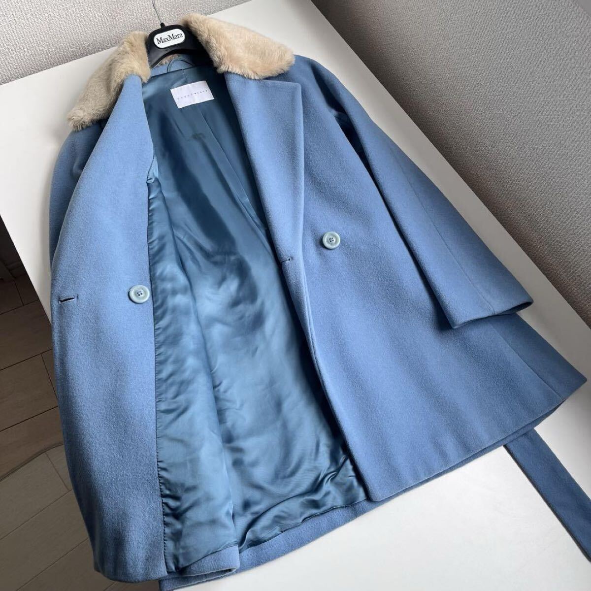 超高級 希少 Maxmara セレブ御用達一級品 ふんわりコート マックスマーラ ペニーブラック ビックカラー 素敵な水色 イタリア製 PENNYBLACK