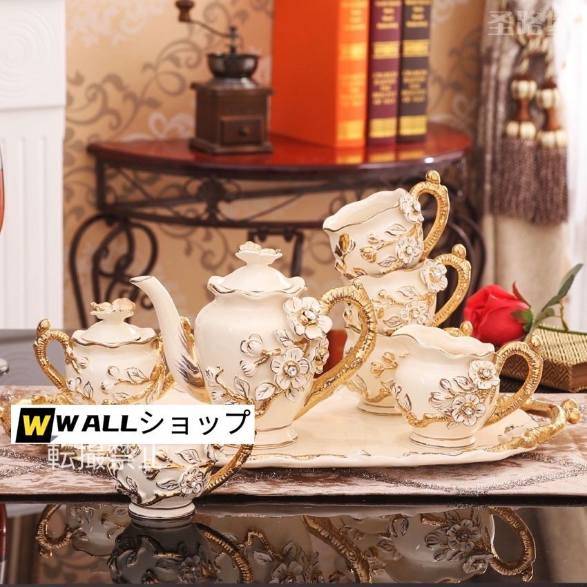 ●状態:新品未使用 ●素材・材質:陶器 ●セット内容: カップ 4客 ティーポットx1点 ミルクポットx1点 シュガーポットx1点 トレイx1点