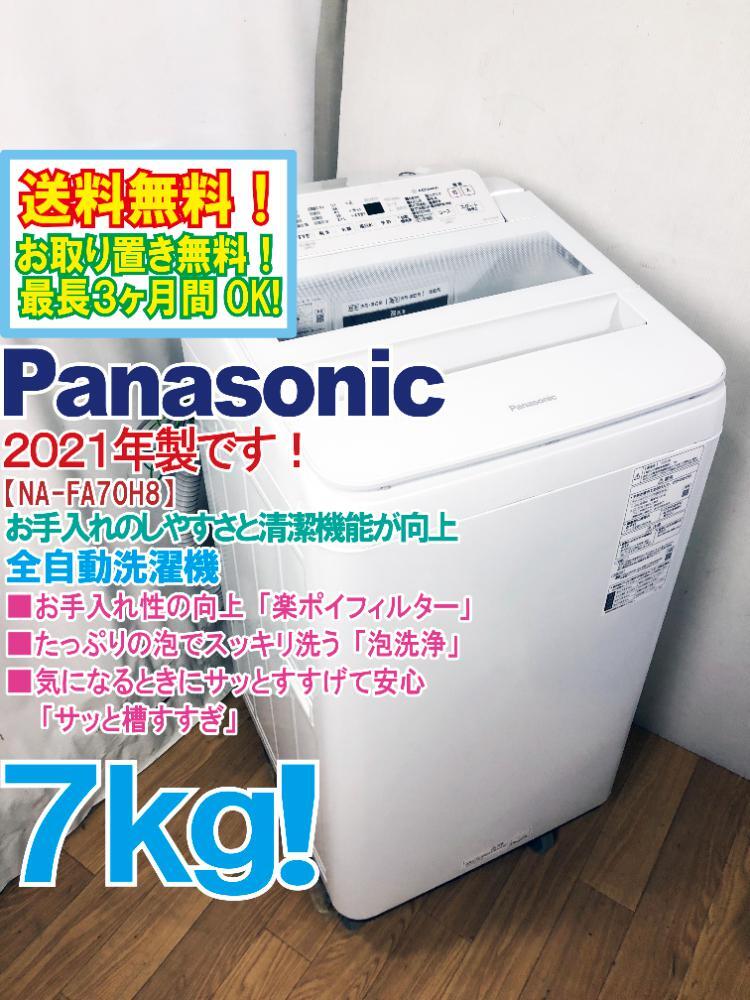 送料無料★2021年製★極上超美品 中古★Panasonic 7㎏「泡洗浄」でスッキリ洗う!!サッと槽すすぎ搭載!洗濯機【NA-FA70H8】FOEV