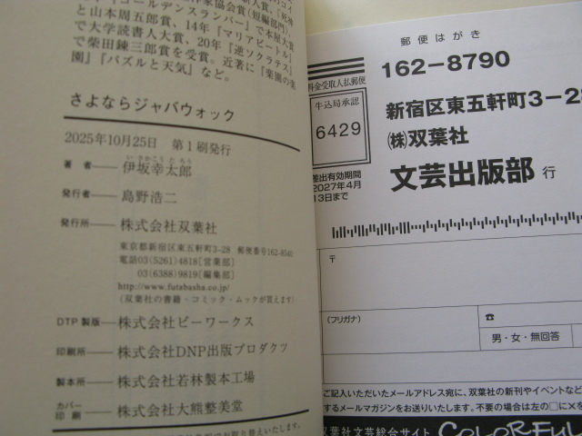 Product name: サイン本『さよならジャバウォック』伊坂幸太郎署名落款入り 令和7年 初版カバー帯 双葉社