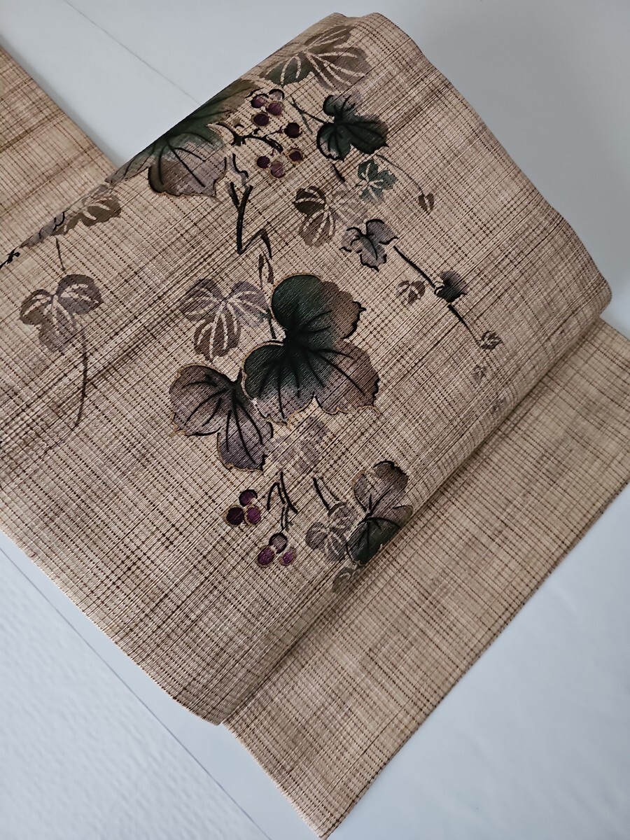 Product name: すずや■236正絹紬地九寸染文様名古屋帯太鼓柄 薄茶系